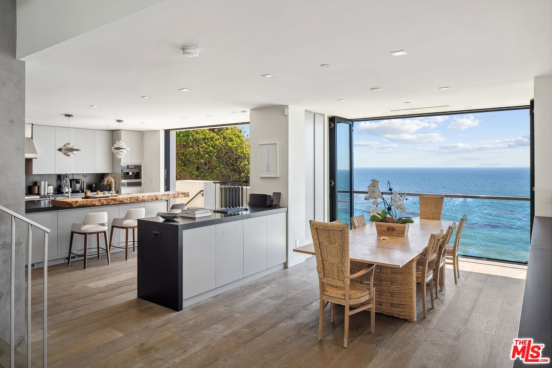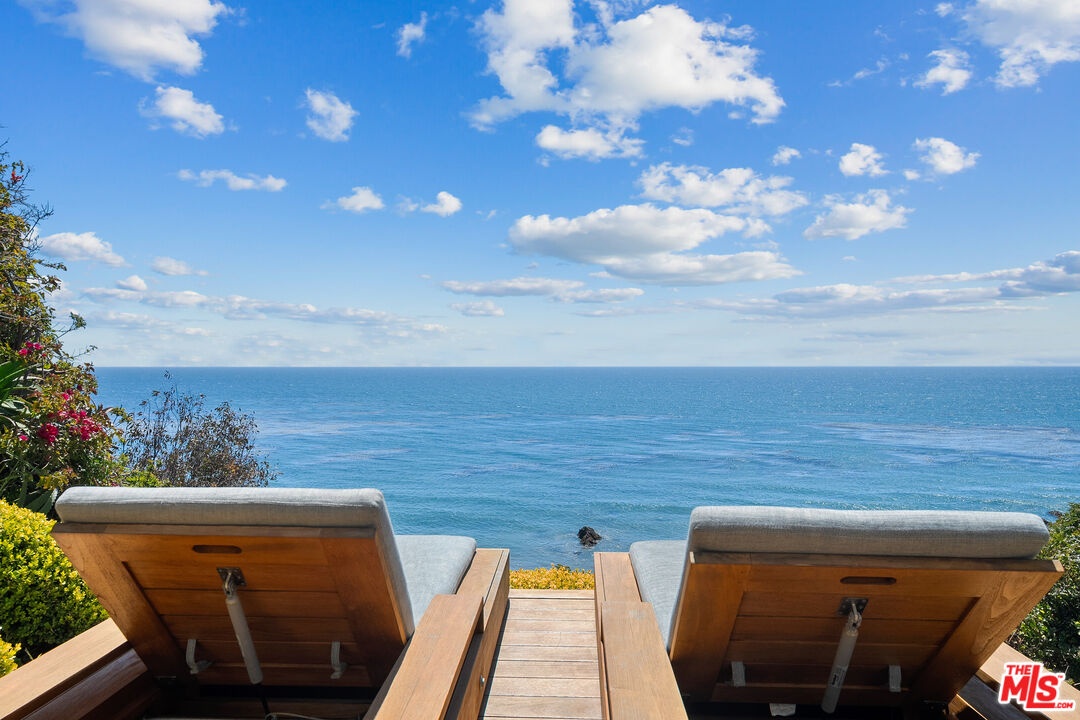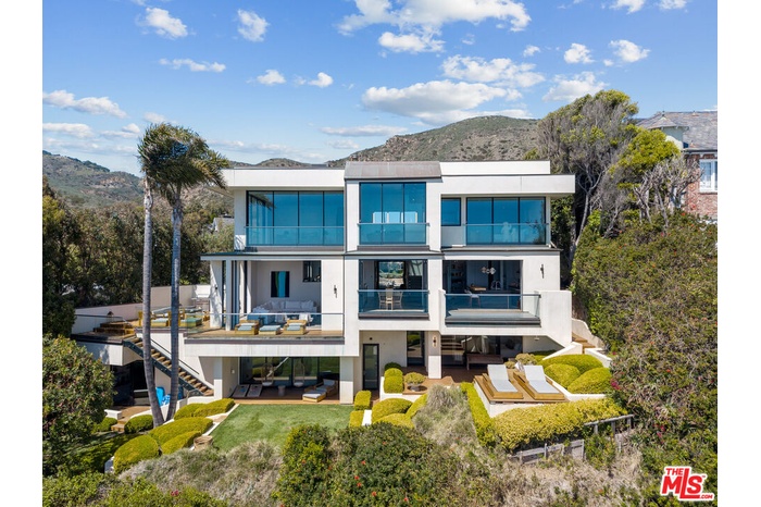 Summer lease available! Commanding sweeping ocean vistas from nearly every room, this extraordinary blufftop estate in Malibu blends refined modern living with serene coastal luxury. Conceived by acclaimed architect Doug Burdge and built to exacting standards by Scott Halley, the residence is a fully realized vision of elegance and sophistication enhanced by a rare additional parcel and direct stair access to one of Malibu's most coveted beaches, just past Lechuza Point. Impeccably upgraded with state-of-the-art audio/visual and security systems, the home offers effortless comfort and advanced functionality throughout. The main level features a spacious step-down living room with fireplace, an open dining area, and a versatile office or music room, all oriented to capture the dramatic ocean views. A huge deck off the living room includes a spa and BBQ, perfect for entertaining or relaxing above the coastline. The gourmet kitchen, equipped with top-tier appliances, opens to a second generous deck with stair access to the lush garden terraces below. Nearly every room on this floor enjoys breathtaking views of the Pacific. A dramatic open staircase leads to the expansive top-floor primary suite, a private retreat with panoramic coastline views, a spa-like bath, and a massive walk-in closet. Two additional large bedroom suites complete the upper level, each offering their own stunning outlooks and luxurious finishes. On the lower level, a sleek media and game lounge is complemented by a Sub-Zero wet bar and a temperature-controlled wine cellar. Two additional guest suites complete this floor, providing comfort and privacy for family or visitors. The outdoor spaces are designed for both relaxation and connection to nature, with beautifully landscaped gardens, multiple lounging and dining areas, and an outdoor shower, ideal after a day on the sand. A rare opportunity to enjoy a turnkey bluff estate in one of Malibu's most desirable settings.