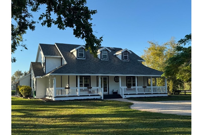 Welcome home to a one-of-a-kind equestrian retreat where modern comfort meets country living. This beautiful 6-bedroom, 4-bathroom farmhouse sits on 5.22 peaceful acres and offers everything you need for a relaxed, spacious lifestyle-- with room for both your family and your horses. The 8-stall concrete barn has a groomer's quarters, and the private 200 x 100 riding arena makes it easy and accessible. The land is flat & open, with plenty of space for turnout and grazing--all fully fenced for peace of mind. Whether you're looking for a peaceful countryside setting, a place to grow with your animals, or simply a breath of fresh air, this property offers it all! Annual lease only- $13k pm entire property/ $9,000 pm for barn and property no house/ $9,000 pm for house only no barn or property.