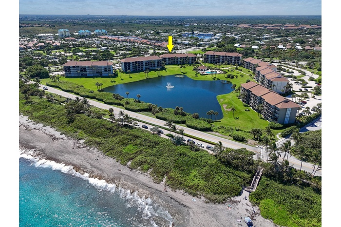 Welcome to coastal living at its finest in this beautifully updated corner condo at The Ocean at the Bluffs South, now available for rent. This highly desirable end unit offers exceptional natural light, serene lake views, and refreshing ocean breezes from its sought-after southeast exposure. Enjoy two private balconies—perfect for morning coffee, outdoor dining, or relaxing while taking in views of the lake, garden, and pool. The interior features a renovated kitchen with custom white cabinetry, quartz countertops, modern hardware, and stainless-steel Bosch appliances. The open-concept layout flows seamlessly into the dining and living areas, with expansive sliding glass doors that highlight the tranquil water views. Tile flooring throughout the main living spaces and fresh finishes create a bright and inviting atmosphere. The spacious primary suite offers direct balcony access, beautiful water views, generous closet space, and a large vanity with a separate wet area. A well-sized guest bedroom and full guest bath provide comfort for residents and guests alike. An additional bonus room offers flexibility as a home office, den, or extra storage space. Additional features include hurricane-impact windows and sliders, as well as a full laundry room with side-by-side washer and dryer and ample storage. Residents of The Ocean at the Bluffs South enjoy 24-hour gated security, a resort-style pool, tennis courts, and beautifully maintained grounds—all just steps from Jupiter's pristine beaches. Conveniently located near Juno Beach, top dining, shopping, and the Juno Pier.