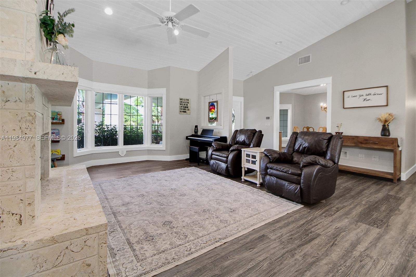 Multiple living areas with a wood-burning fireplace that can be converted to gas. Dual A/C systems and tankless water heater.