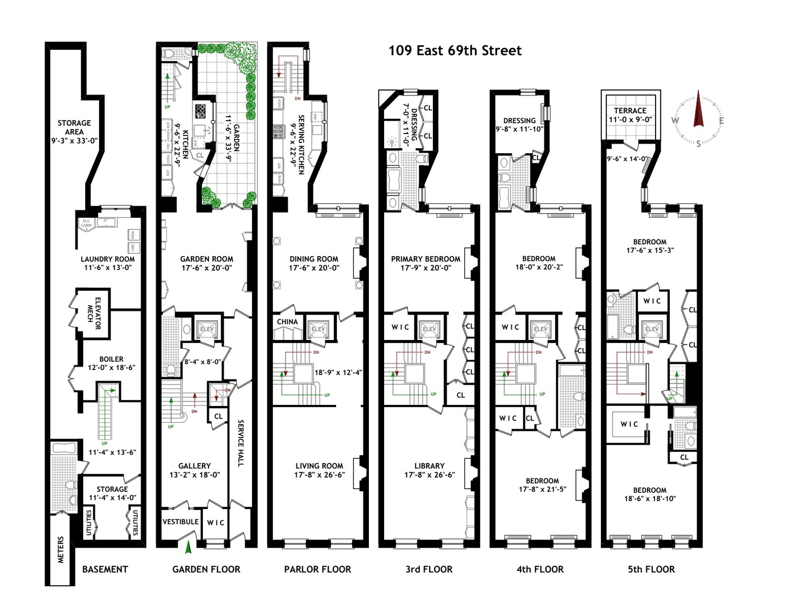 Spanning more than 20 feet in width and in move-in condition, this remarkable residence offers 5 bedrooms and 7.5 bathrooms, along with central air conditioning, a newly installed elevator, soaring ceilings, and timeless architectural character throughout.