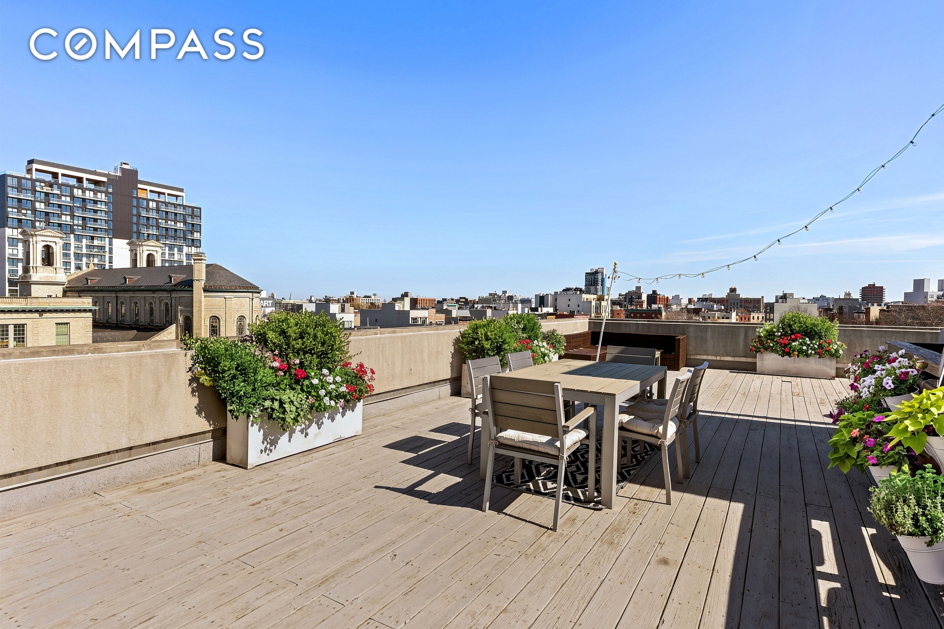 - Large roof deck with sweeping views and gym