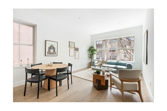 The Garden; A sprawling 2,255-square-foot garden duplex featuring two spacious bedrooms and two bathrooms on the main level and an expansive sun-drenched, high-ceiling recreational space below. This versatile lower level includes an additional bonus room perfect for a guest suite, home office or private gym, completed with an elegant powder room, a secondary laundry room with in-unit hookups for washer and dryer and access to your own private garden oasis thoughtfully designed for living and entertaining,