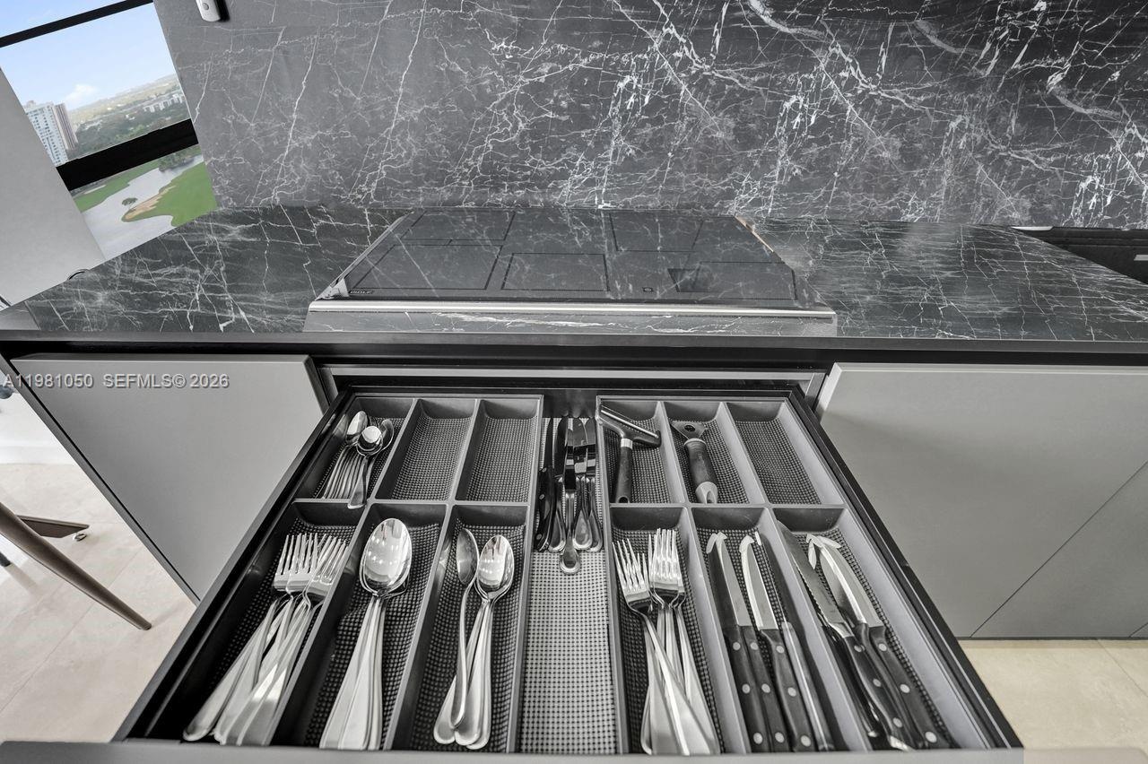 Spectacular water and golf course views from every room. Split 2-bedroom, 2 bath residence. Completely remodeled, move in condition, ceramic throughout, formal dining, and breakfast area. No expense spared. Fully equipped Mia Cuccina gourmet kitchen. Top of the line appliances. Beautifully remodeled bathrooms. Plenty of storage in bathrooms and kitchen. Fully funded reserves. Private gourmet restaurant overlooking the Intracoastal, run by Chef Perl. High speed Internet & cable with Xfinity included. Two pools, the Wi-Fi Hamptons café, a movie theater, a fitness center, a sauna, a spa and nail salon. Racquetball courts, party rooms, a kids' playroom, a library. Hamptons West, located in the heart of Aventura, has fully funded reserves. 40 year re-certification is almost complete. Close to Aventura Mall, the beach, restaurants, and shopping.