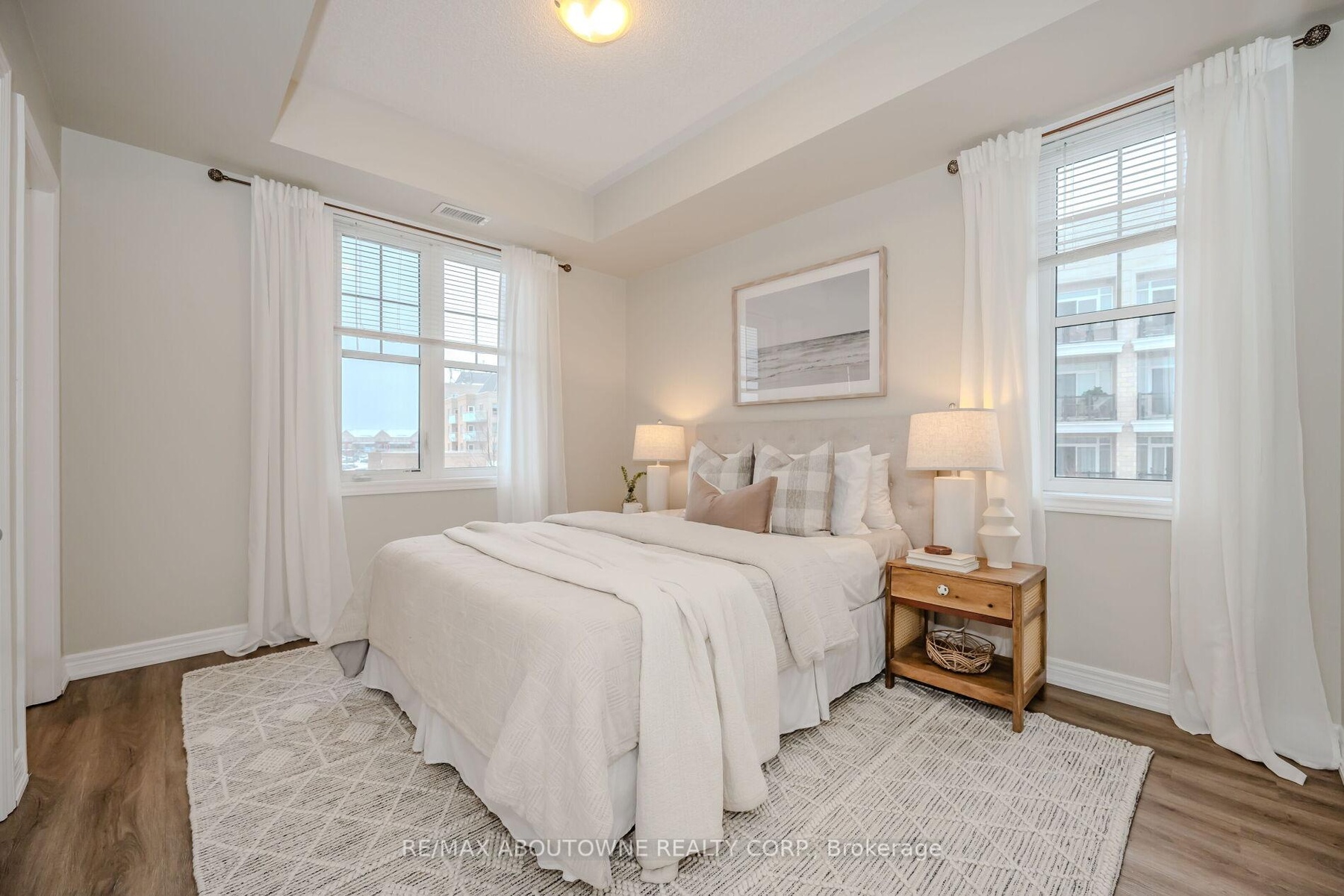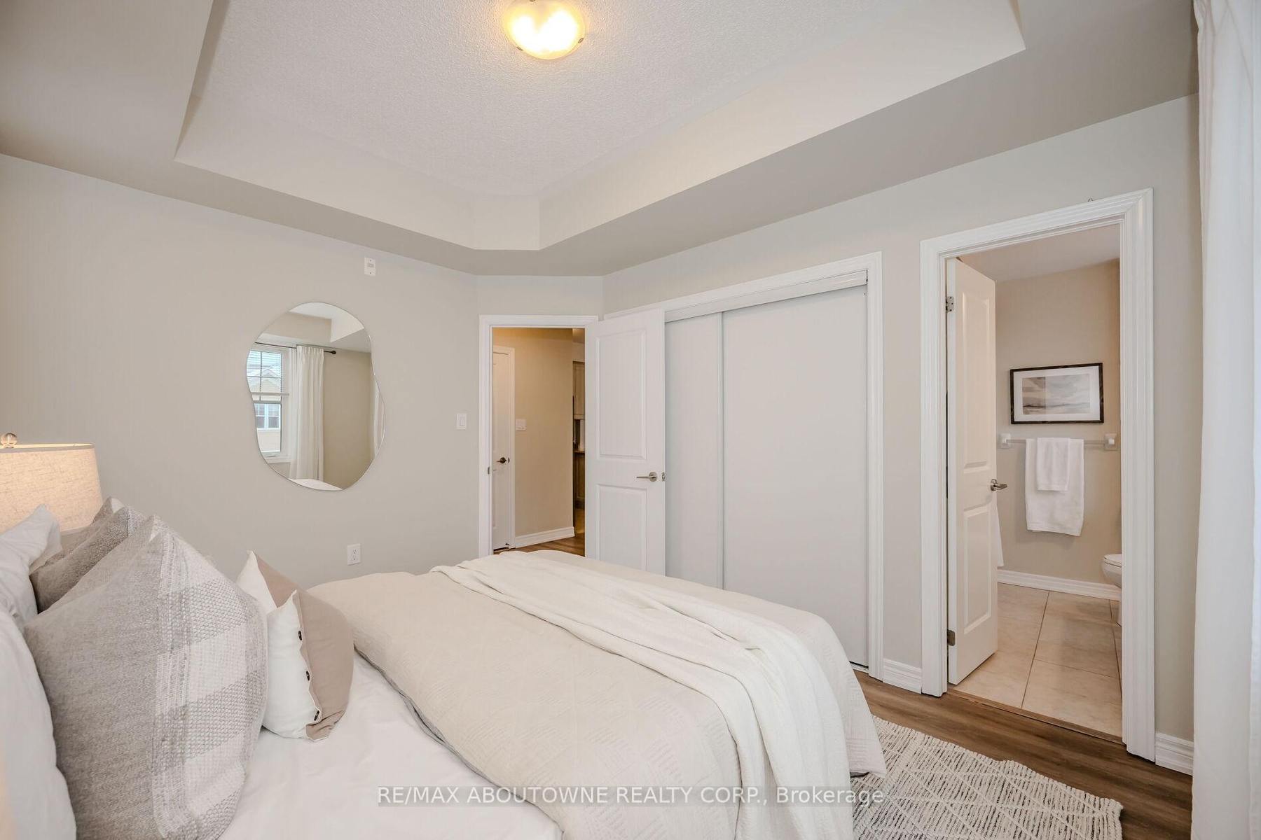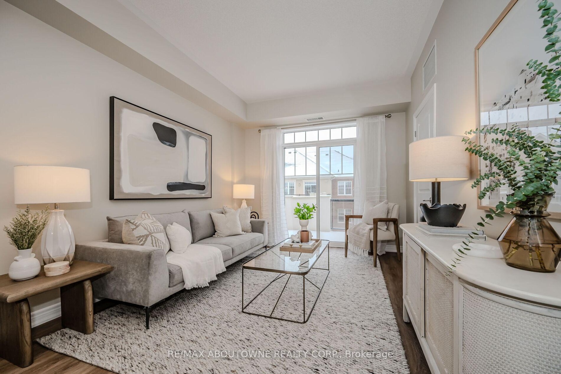 Super stylish 2 bedroom, 2 full bath condo in Oakville's vibrant 'Uptown Core' community. This top floor corner unit features a great layout, freshly painted (2026) with stainless steel appliances and newer flooring. Immaculate and well cared for - this unit is move-in ready! The unit also features a massive outdoor terrace - plenty of room for outdoor entertaining. Ensuite laundry and 2 parking spaces - including your own private garage! Location just can't be beat with shopping and restaurants all within walking distance! Location in the catchment of many of Oakville's top schools. Please note: low condo feels relative to similar sized units in the neighbourhood.
