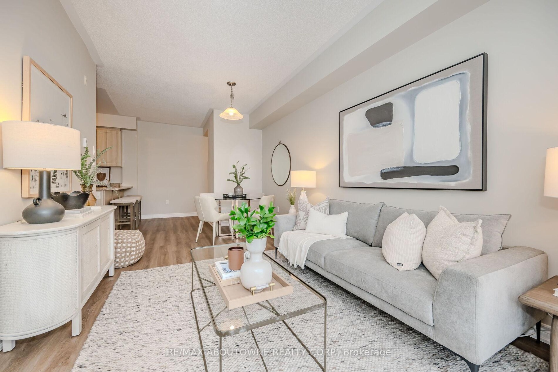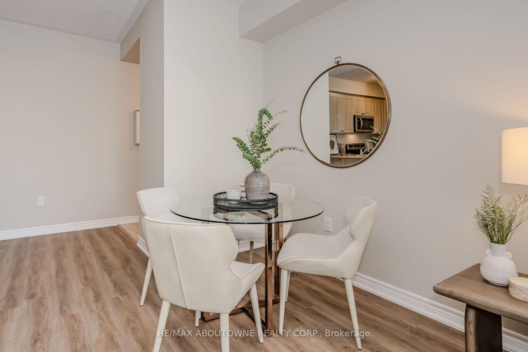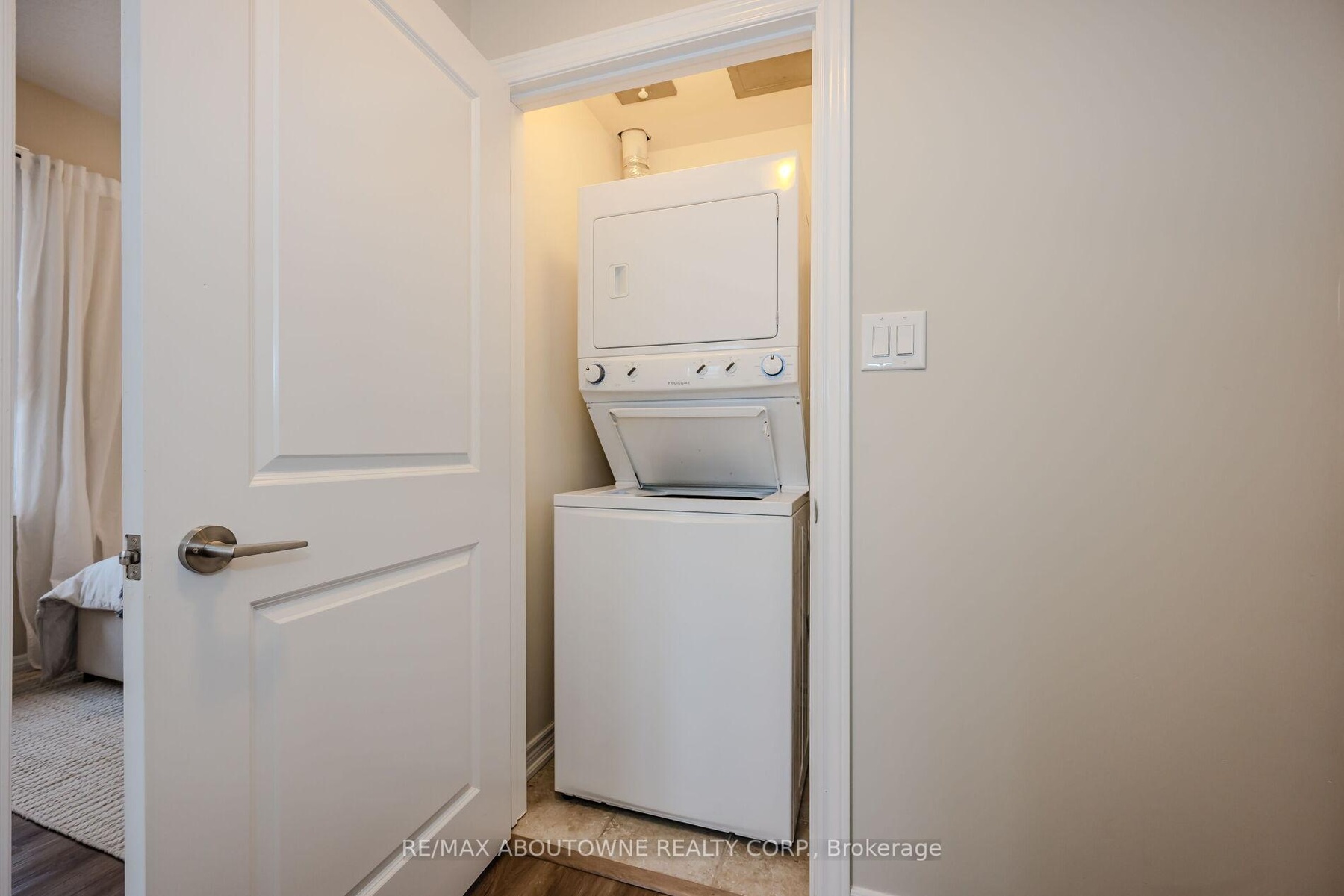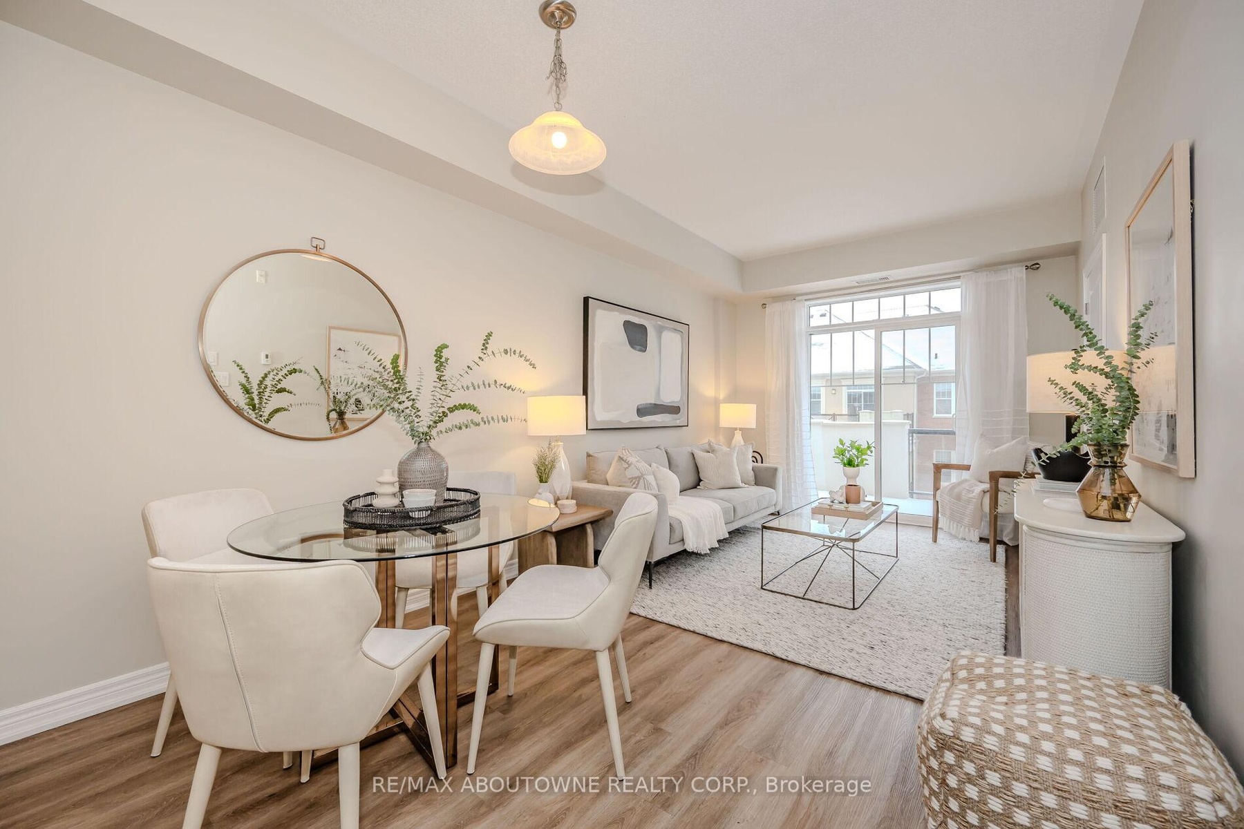 Super stylish 2 bedroom, 2 full bath condo in Oakville's vibrant 'Uptown Core' community. This top floor corner unit features a great layout, freshly painted (2026) with stainless steel appliances and newer flooring. Immaculate and well cared for - this unit is move-in ready! The unit also features a massive outdoor terrace - plenty of room for outdoor entertaining. Ensuite laundry and 2 parking spaces - including your own private garage! Location just can't be beat with shopping and restaurants all within walking distance! Location in the catchment of many of Oakville's top schools. Please note: low condo feels relative to similar sized units in the neighbourhood.