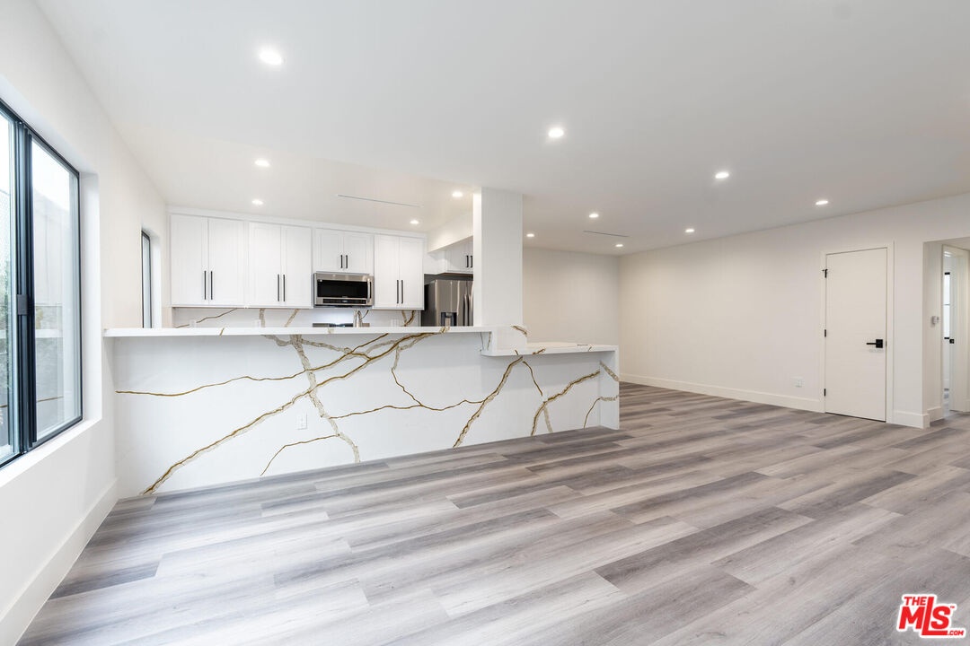 Location is truly everything and this hideaway is in the heart of West Hollywood. Nestled on an idyllic tree-lined street, 1262 Sweezter is a celebration of true boutique luxury- concentrating on luxe modern style and design, while keeping functionality in mind. This fully renovated secured 2bed/2 bath boosts a large modern kitchen that flows effortlessly into an open concept dining and living space. Kitchen is equipped with marbled quartz countertops, designer cabinetry, and stainless-steel appliances. The kitchen counter seamless stretches into a kitchen peninsula which can double as a perfect at-home work space, equipped with a hidden pop-up USB/charger station. Private balcony off living area. Chic light grey flooring throughout and recessed lighting in addition to the flood of natural light make this unit bright and airy. Two spacious bedrooms with large closets. Master bedroom with en-suite bath. Spa-like bathrooms have walk-in shower, with built-in shower bench offering room to relax and unwind. Washer and Dryer conveniently within the unit. Ample storage throughout. Gated parking. Garage and building secured with exterior surveillance and gated access. EV car charging ports. Situated as central as it gets in Los Angeles, you are just moments from finding the best of all worlds at your fingertips. From world-class shopping, vibrant nightlife, celebrated dining havens, to the best culture and entertainment of West Hollywood and The Sunset Strip.