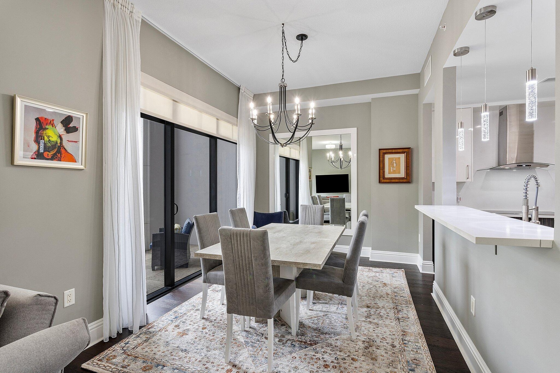 Experience the ultimate in downtown living in this ultra-chic two-level, 1,707 sf, 2 Bed|2.1Bath townhome in the heart of Boca Raton. This fabulous TH features 10' high ceilings, floor-to-ceiling windows, a glass stair railing and rich dark solid wood flooring throughout. The showstopping modern kitchen is a true centerpiece, boasting bold high-gloss zebra wood cabinetry, pristine white quartz countertops, an induction cooktop, Sub-Zero refrigerator, a built-in Miele Nespresso coffee system and more. A spacious walk-in pantry with custom shelving adds both function and convenience. Entertain with ease from the dining area, which opens to a spacious covered balcony, perfect for grilling, relaxing, and enjoying the downtown lifestyle. Comes w/ (2) Assigned Pkg spaces & (1) Storage. Add'l improvements include; New bathroom vanity cabinetry, updated white modern porcelain sinks, custom wall mirrors, sheer linen window treatments and solar shades. Washer & dryer and hot water heater were replaced in 2024. 200 East underwent a $6M interior/exterior design renovation, completed in 2025. Located in one of Boca Raton's most sought-after luxury buildings, this TH offers the ultimate blend of style, comfort, and walkable city living - Just steps to Mizner Park, Royal Palm Plaza and some of Boca's best restaurants, shopping and entertainment. Enjoy 200 East's 5-star luxury services including 24/7 front desk/concierge, on-site full staff management, porte-cochere valet parking, a resort style 4th level stunning pool and spa deck and an all new clubroom and exercise room. Photos shown are not the furniture and furnishings currently in the unit & photos of both bedrooms are virtually staged.
