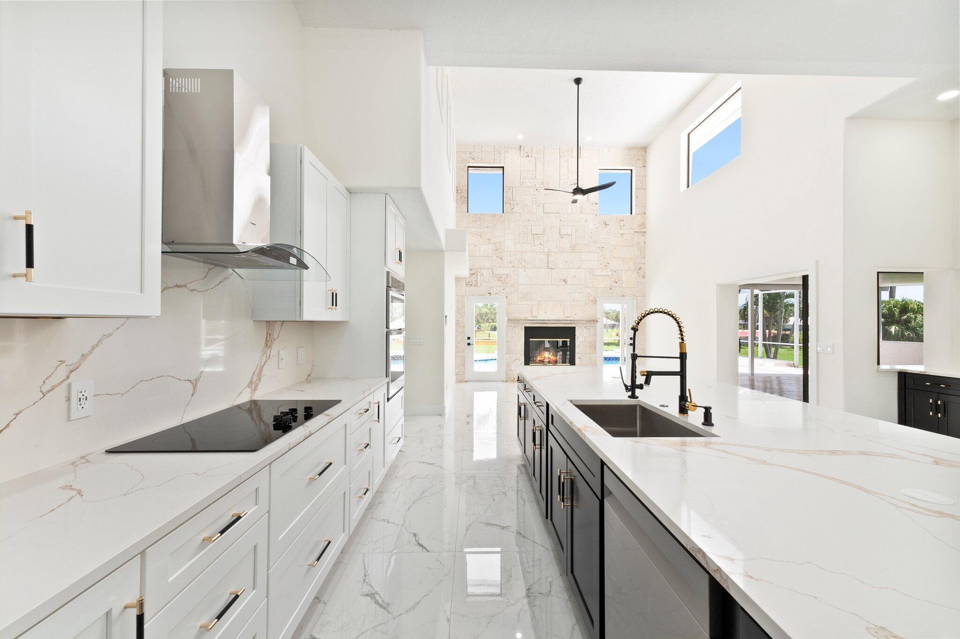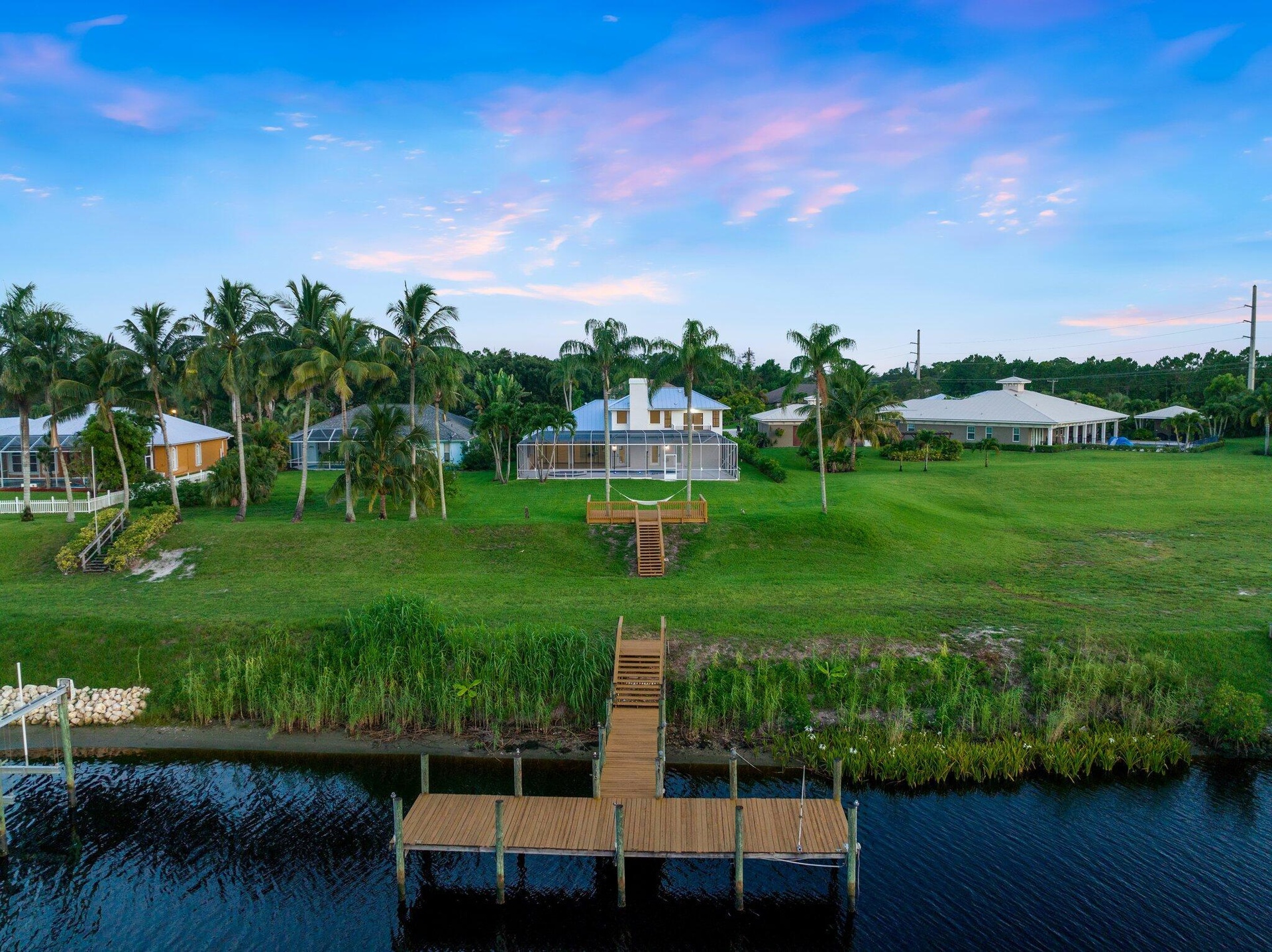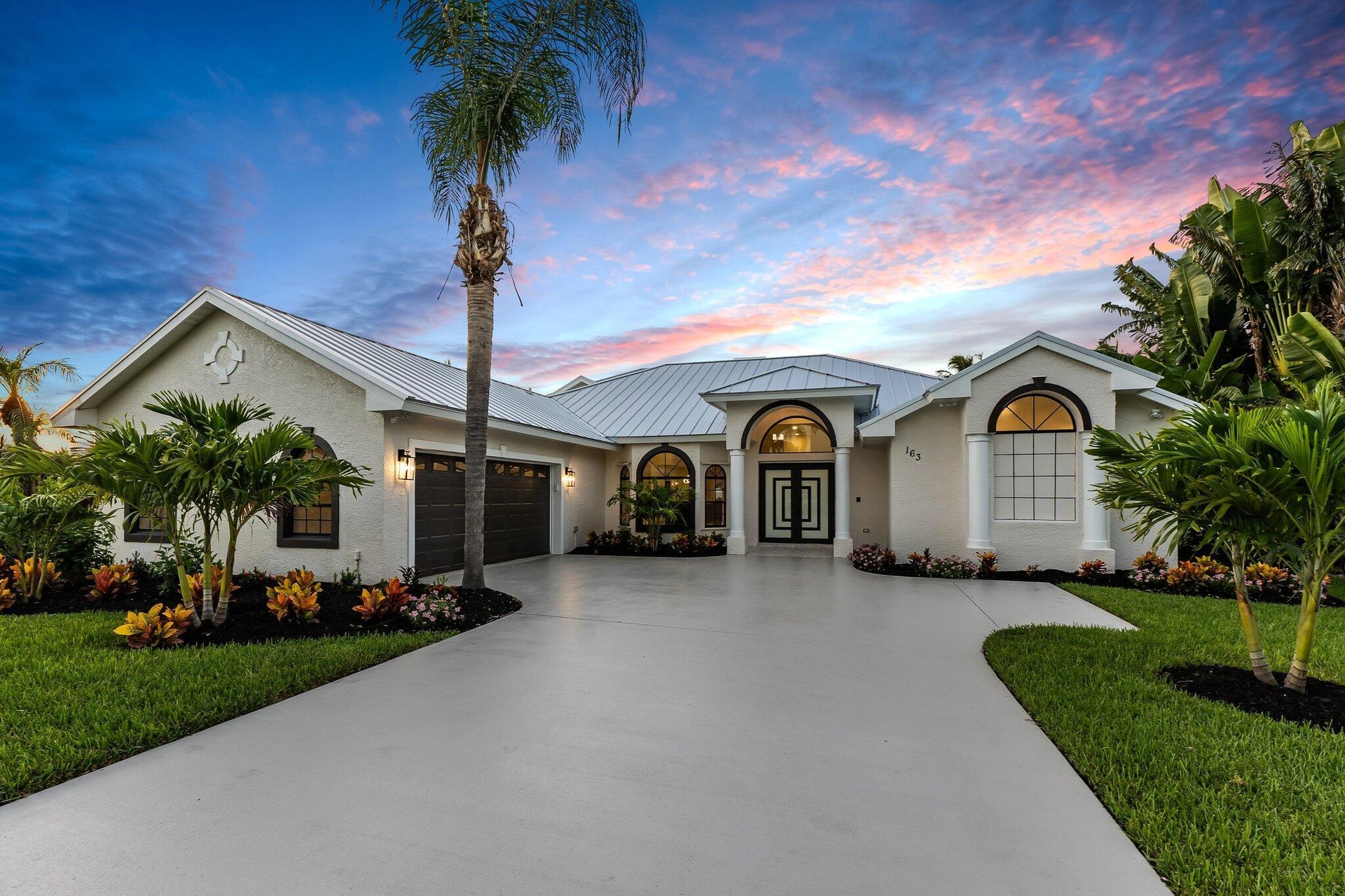 Stunning REMODELED home is a coastal contemporary architecture blend of highly desirable finishes & details! This exceptional waterfront home shows like a Model! Details include New Metal Roof, 1/2 acre lot with great curb appeal & exceptional setting! Impressive 5 Bedrooms, 2 Baths, 2.5 Car Garage & fabulous outside area boasting screen enclosed resurfaced pool with spa, travertine decking, party deck & private dock overlooking breathtaking water views. Just a short boat ride to Ocean Access. Gated community with only 34 private homes is a hidden secret & real gem! Beautiful double door entrance, luxury open concept, volume ceilings & 48 x 24 gorgeous porcelain tile sets off the tone of this home. Fabulous Gourmet kitchen, featuring 16x5 quartz island & backsplash. This Chef's kitchen includes Electric Cooktop, custom cabinetry, pop up smartphone charges in island, separate wine bar counter space with quartz counter top and wine cooler, wall oven & recessed LED Lights perfect for entertaining & the heart of the home. Dramatic Formal living Room, Dining Room, family room with an elegant Coral fireplace & flex room perfect for a bar, pool table or just gracious living whether entertaining family & friends with sliding glass door, natural lighting & stunning Views. This home is for the most discriminating buyer! Grand Master Suite offers split floor plan & the tranquil timeless SPA LIKE master bathroom boasts raised Vanity Cabinets, dual sinks, waterfall bathroom faucets, 14 foot Luxury Sports Shower & stand alone soaking tub. Upstairs you will find 5th bedroom or private space with a walk out balcony overlooking the beautiful waterway canal. When you think about Florida Living you will love the outdoor space! The tropical oasis will give you privacy, tranquility & Joy. Bring you boat & slow down to the pace you have been looking for & the lifestyle you want! Roof 2023, 2 New A/C units & Garage is 2 plus golf cart garage space or storage space with fabulous epoxy flooring.