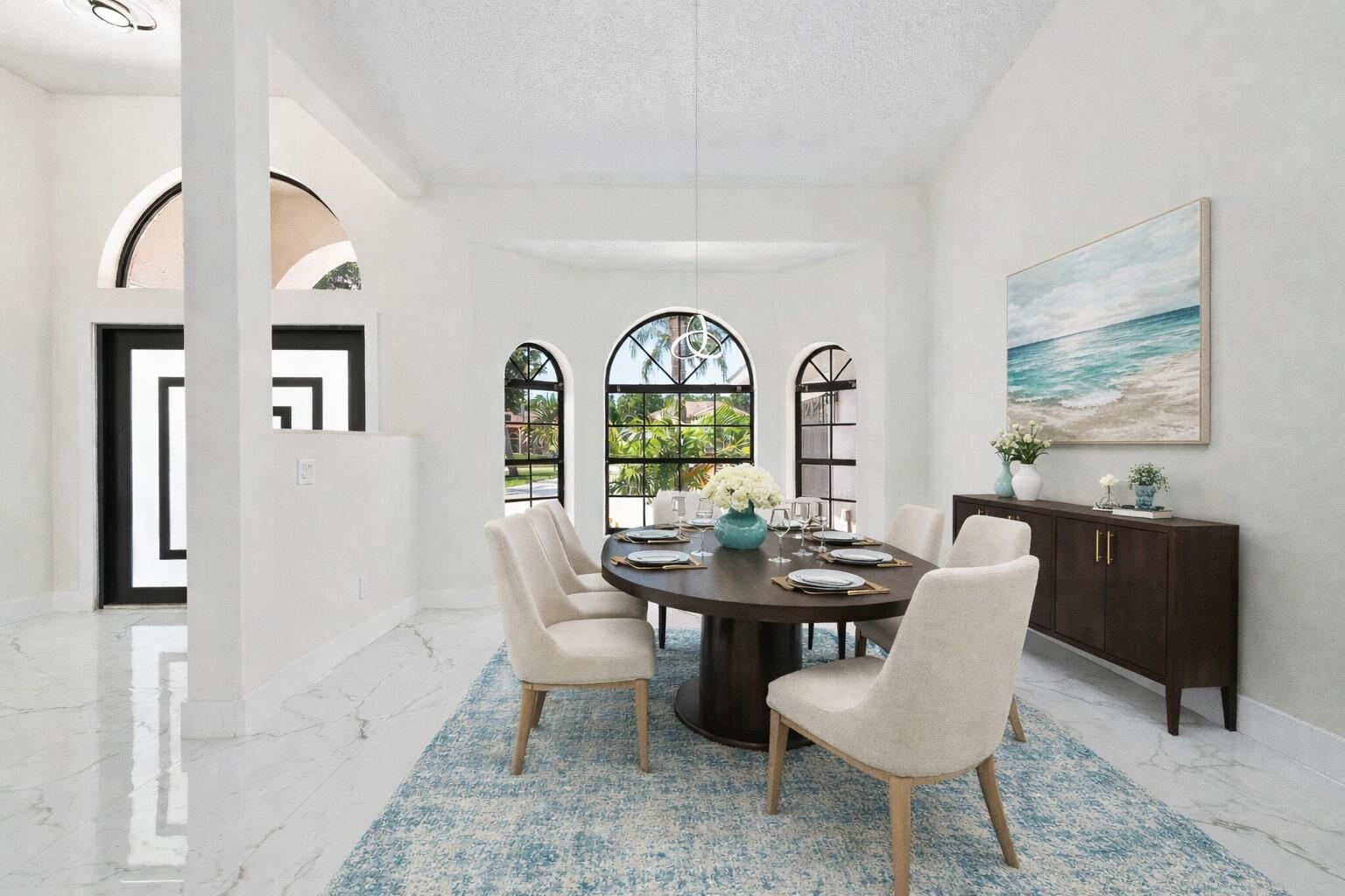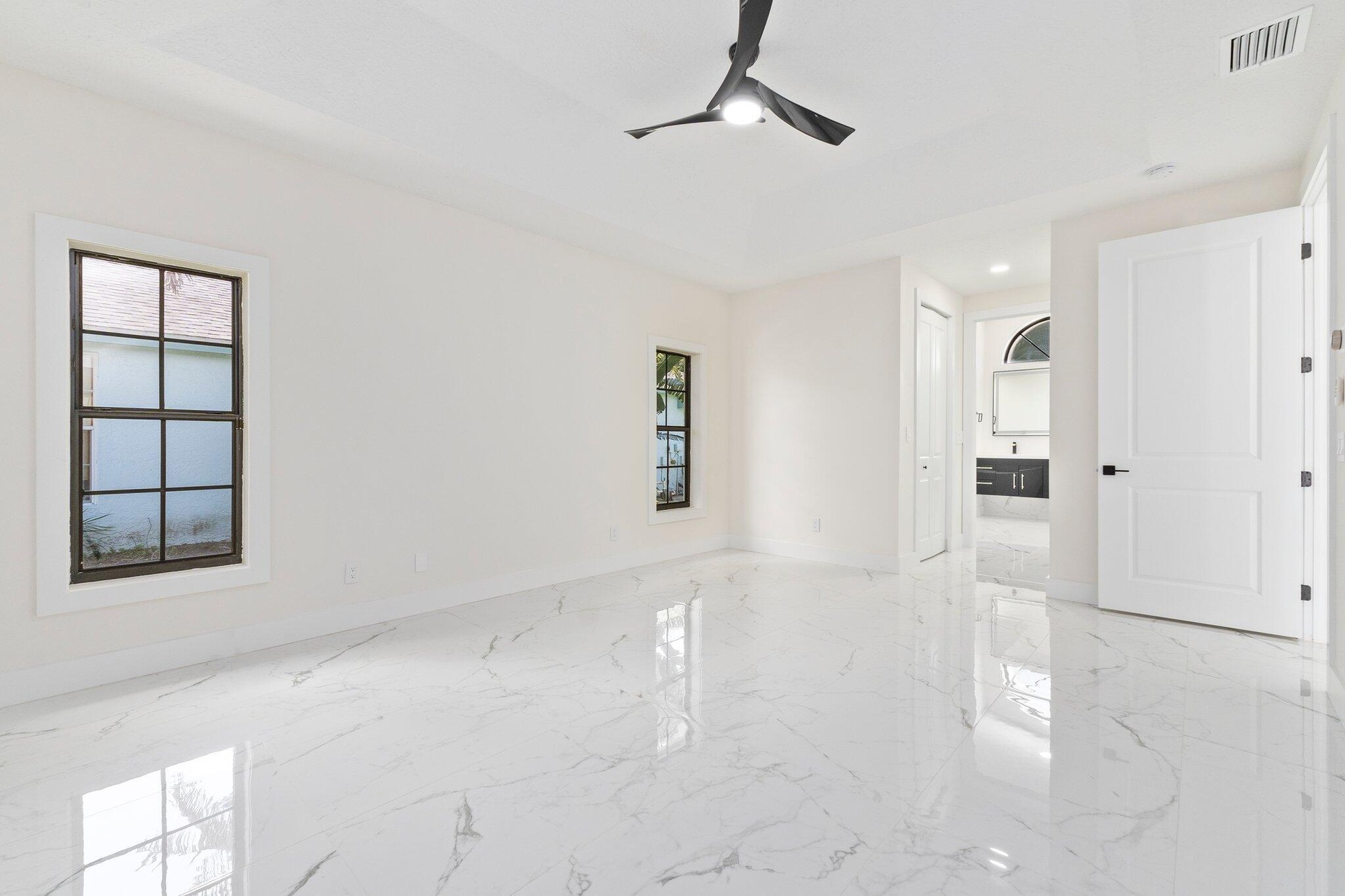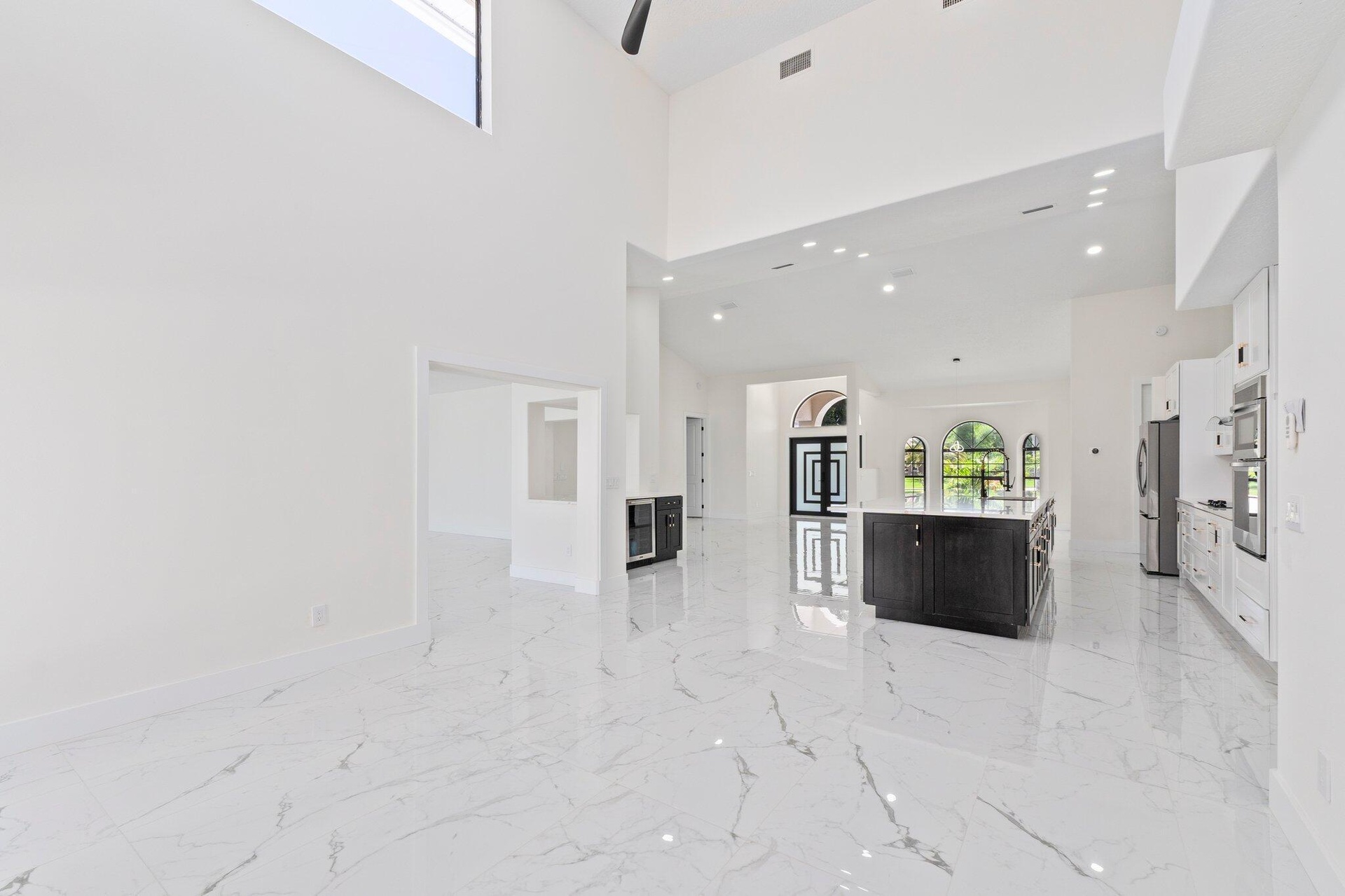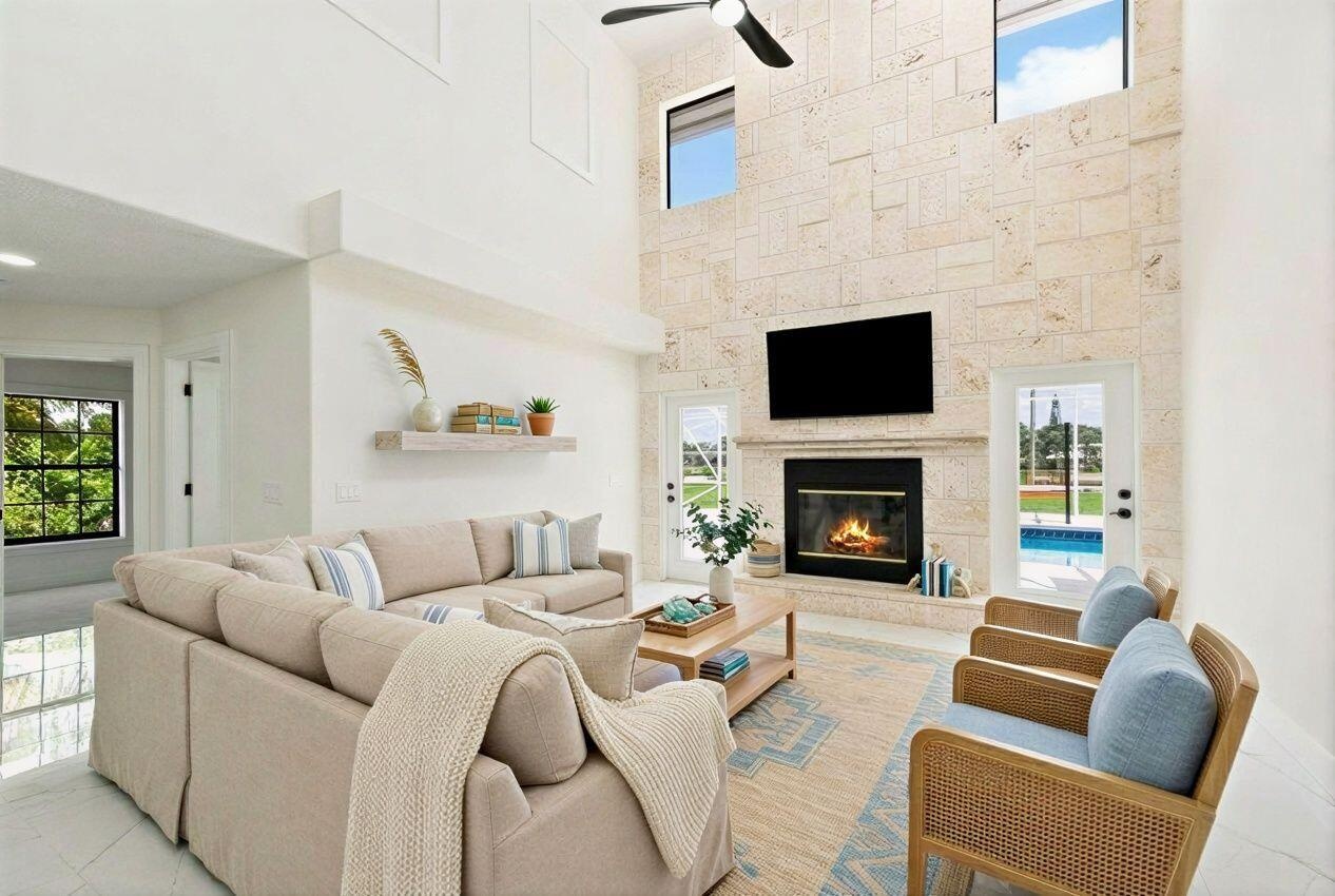 Stunning REMODELED home is a coastal contemporary architecture blend of highly desirable finishes & details! This exceptional waterfront home shows like a Model! Details include New Metal Roof, 1/2 acre lot with great curb appeal & exceptional setting! Impressive 5 Bedrooms, 2 Baths, 2.5 Car Garage & fabulous outside area boasting screen enclosed resurfaced pool with spa, travertine decking, party deck & private dock overlooking breathtaking water views. Just a short boat ride to Ocean Access. Gated community with only 34 private homes is a hidden secret & real gem! Beautiful double door entrance, luxury open concept, volume ceilings & 48 x 24 gorgeous porcelain tile sets off the tone of this home. Fabulous Gourmet kitchen, featuring 16x5 quartz island & backsplash. This Chef's kitchen includes Electric Cooktop, custom cabinetry, pop up smartphone charges in island, separate wine bar counter space with quartz counter top and wine cooler, wall oven & recessed LED Lights perfect for entertaining & the heart of the home. Dramatic Formal living Room, Dining Room, family room with an elegant Coral fireplace & flex room perfect for a bar, pool table or just gracious living whether entertaining family & friends with sliding glass door, natural lighting & stunning Views. This home is for the most discriminating buyer! Grand Master Suite offers split floor plan & the tranquil timeless SPA LIKE master bathroom boasts raised Vanity Cabinets, dual sinks, waterfall bathroom faucets, 14 foot Luxury Sports Shower & stand alone soaking tub. Upstairs you will find 5th bedroom or private space with a walk out balcony overlooking the beautiful waterway canal. When you think about Florida Living you will love the outdoor space! The tropical oasis will give you privacy, tranquility & Joy. Bring you boat & slow down to the pace you have been looking for & the lifestyle you want! Roof 2023, 2 New A/C units & Garage is 2 plus golf cart garage space or storage space with fabulous epoxy flooring.