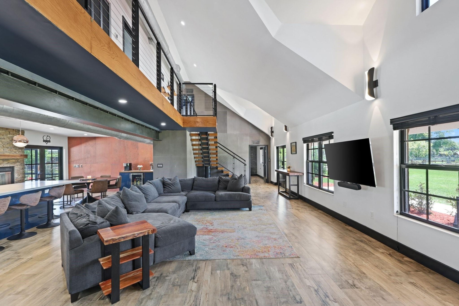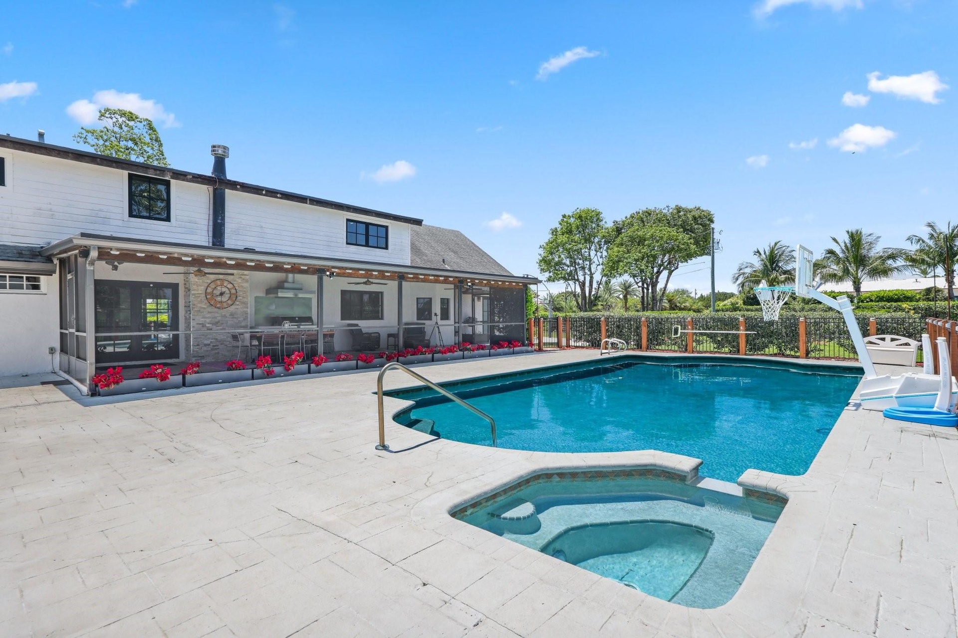 Renovated modern farmhouse in the Rolling Oaks community of Southwest Ranches. Situated on a private 2.33-acre lot, this 6-bedroom, 4-bathroom home spans over 4,142 sq ft of living area. Step outside to your own private oasis—complete with a sparkling pool, 2 stable horse barn, koi ponds, expansive screened patio and an outdoor kitchen, perfect for entertaining year-round. Inside, the upgraded kitchen flows seamlessly into open living & dining spaces complete with a cozy fireplace. The primary suite and one guest bedroom are located on the main level with four additional bedrooms upstairs. Custom farm doors and woodwork throughout. The property is fully fenced and gated for privacy. Separate shed for additional storage. This one-of-a-kind estate offers luxury, space, and serenity.