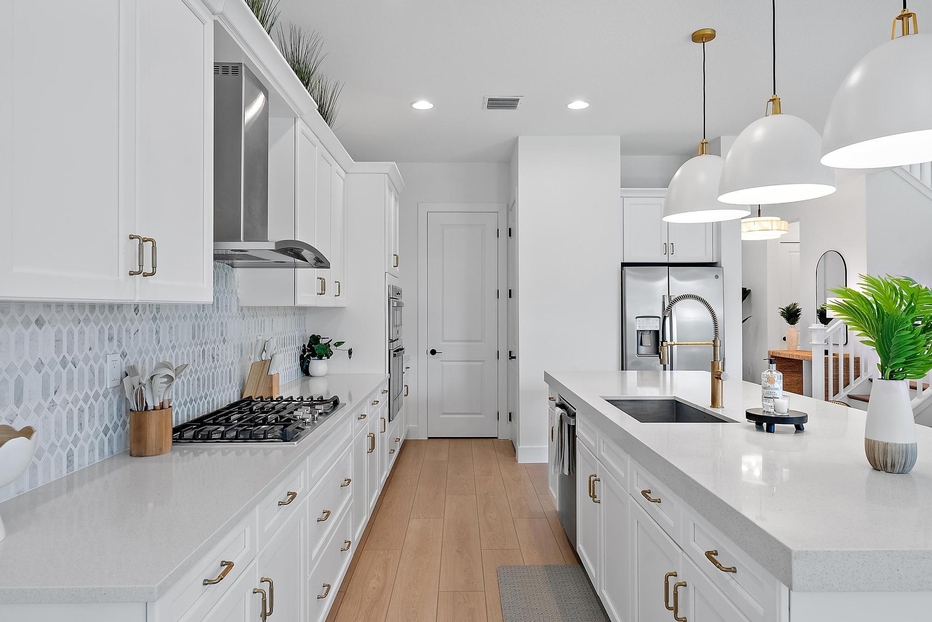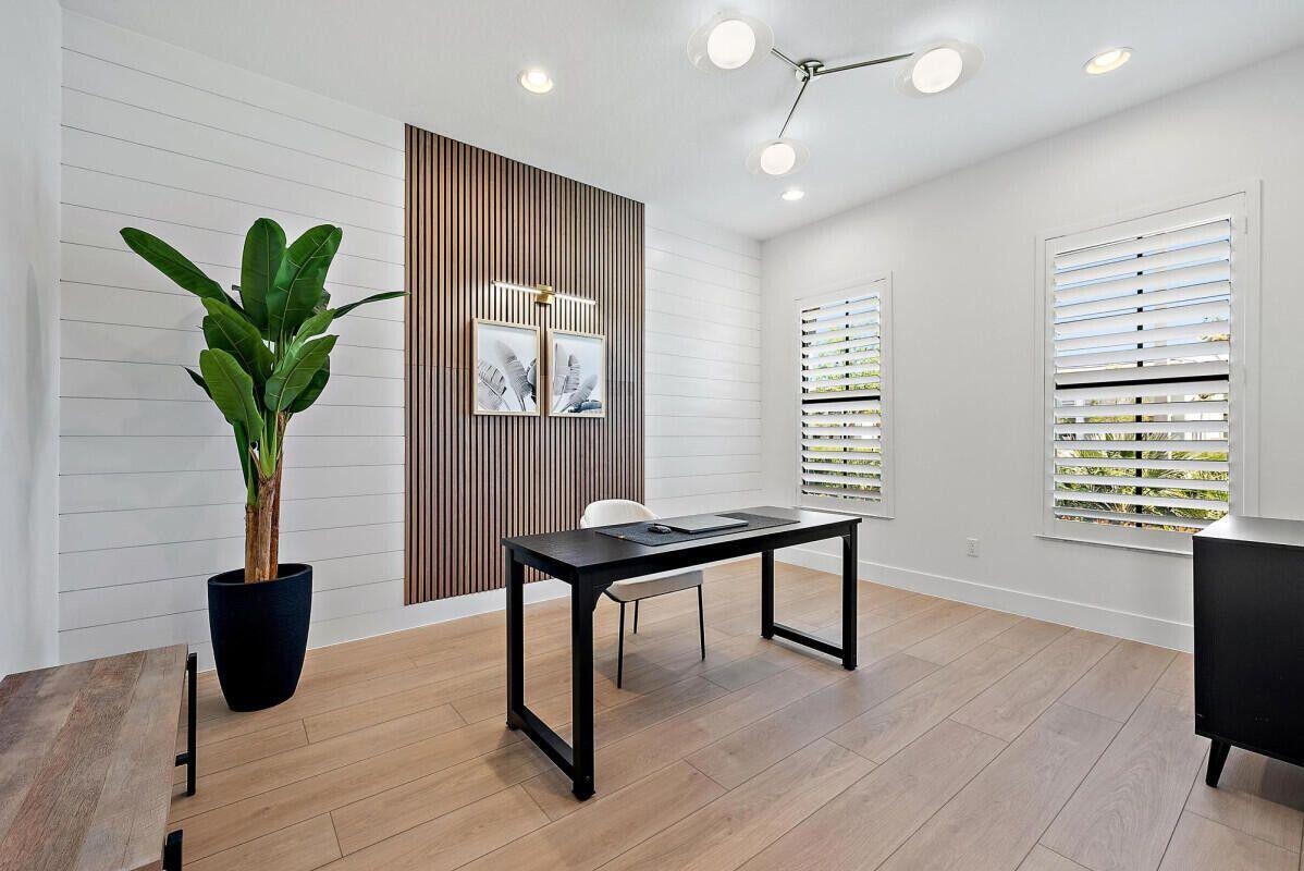 Welcome to this beautifully UPDATED, FULLY-FURNISHED, turnkey home located in the highly sought-after Alton community in the heart of Palm Beach Gardens. This spacious residence offers 5 bedrooms and 2.5 bathrooms which includes a versatile 5th bedroom that can easily serve as a private office, guest room, or flex space. Step inside to discover a bright, thoughtfully designed interior featuring wide-plank wood-look flooring throughout, fresh interior paint, updated hardware, designer mirrors, contemporary lighting fixtures, and a striking front entry door that fills the home with natural light. Plantation shutters throughout provide timeless style, while motorized shades in the living room offer added comfort and privacy. Upstairs, you'll find four bedrooms all on one level, offering ideal and functional living. The spacious primary suite features a large walk-in closet and an updated en-suite bathroom with a walk-in shower. Three additional bedrooms, a full bathroom, and large laundry room complete the second floor. The outdoor living space has been beautifully enhanced, creating a private setting perfect for relaxing, entertaining, or enjoying the South Florida lifestyle. Ideally situated within walking distance to the Alton Clubhouse, residents enjoy access to resort-style amenities including a community pool, fitness center, tennis, pickleball, basketball, and volleyball courts. The neighborhood also features playgrounds and green spaces, making it ideal for active living. Just minutes from Alton Town Center's restaurants, shops, and conveniences, and only three miles from the beach, this home offers the perfect blend of modern comfort, location, and the Palm Beach Gardens lifestyle.
