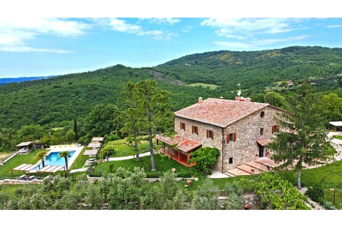 In the village of Civitella in Valdichiana, in a stunning panoramic position between Valdambra and Valdichiana, stands this prestigious agricultural estate developed around a historic Lombard stone tower, expertly and fully renovated in 2021. Currently used as an agriturismo, the property combines the authentic charm of Tuscan rural architecture with high energy efficiency standards.