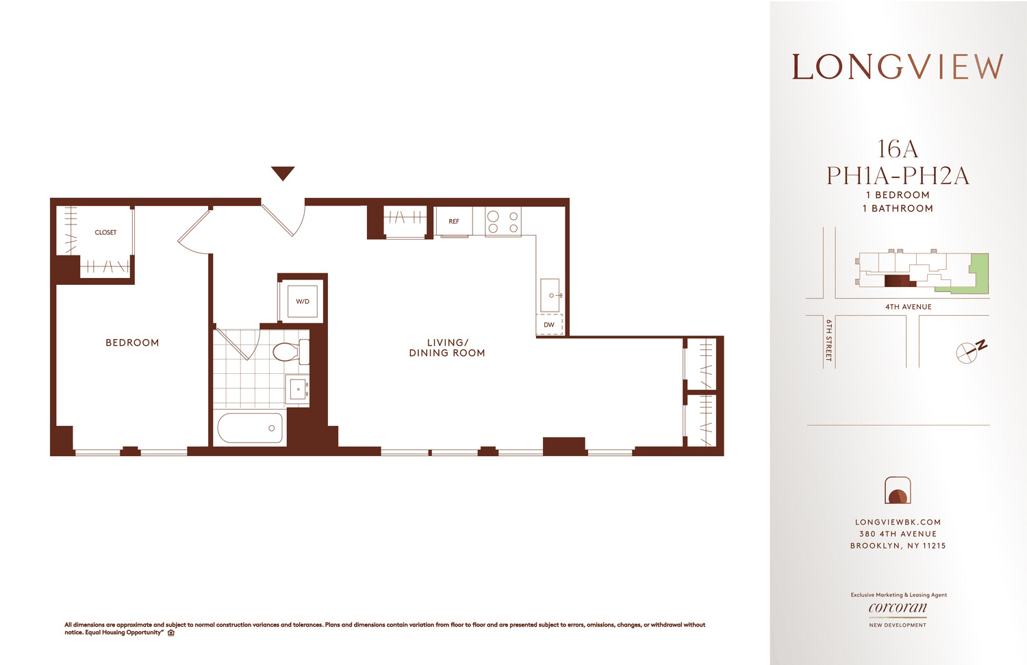 Eastern Facing Designer one bedroom + home office with separate Park Slope streetscape views only minutes from the F, G and R Subway lines and across from JJ Byrne / Washington Park. Contact a Corcoran New Development Representative today for more information and to schedule a private tour.
