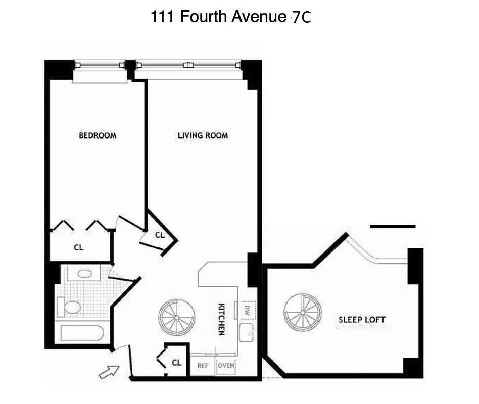 Welcome to Residence 7C, a quintessential New York loft ! This dramatic corner 1-bedroom + mezzanine, 1-bathroom home offers an inviting, open-concept living space that seamlessly blends historic style and comfort.