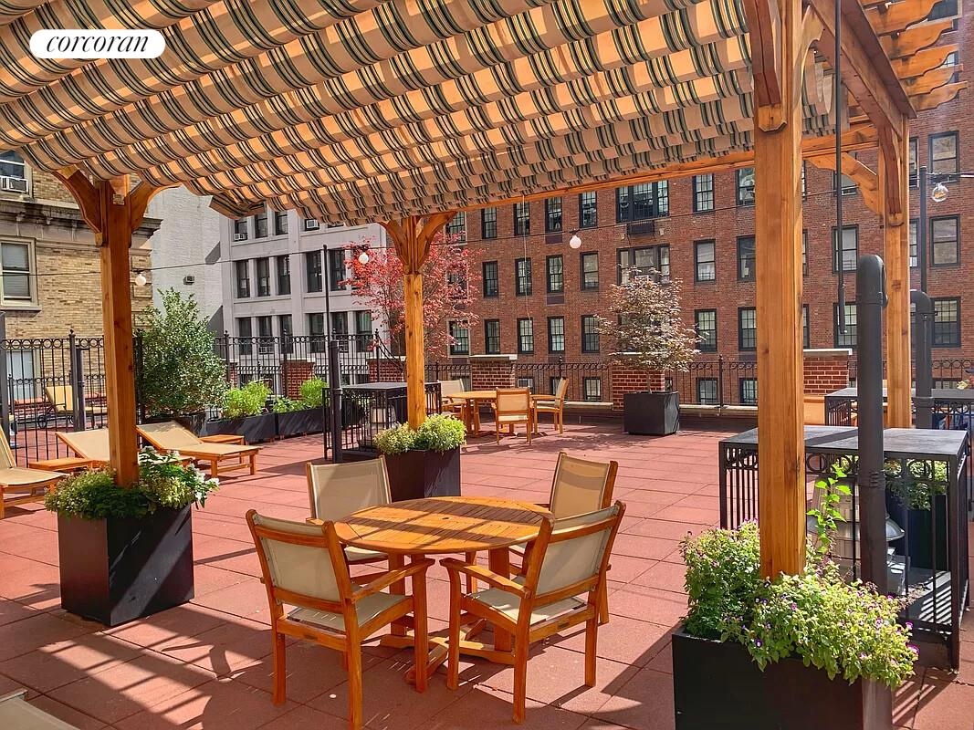 The Albert is a full-service prewar co-op with 24-hour door staff, a resident manager, full-time handyman, porters, bike storage, and a renovated lobby. Residents enjoy a landscaped, furnished roof deck. Reasonable board policies allow parental purchases, pied-à-terre, and pets. Recent upgrades include hallway renovations and completed Local Law facade work.
