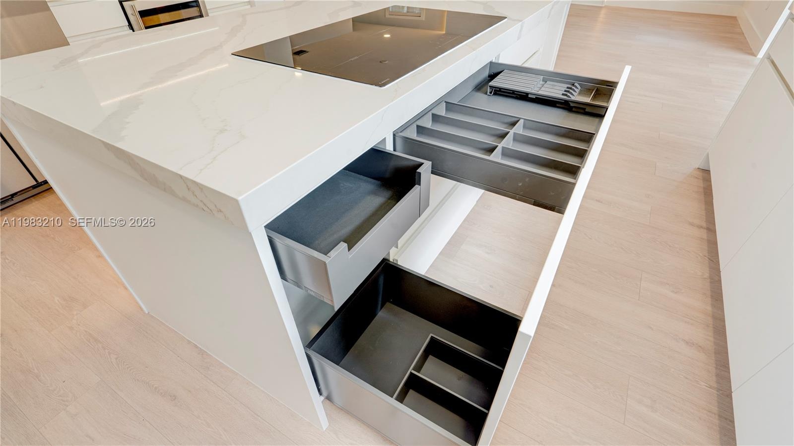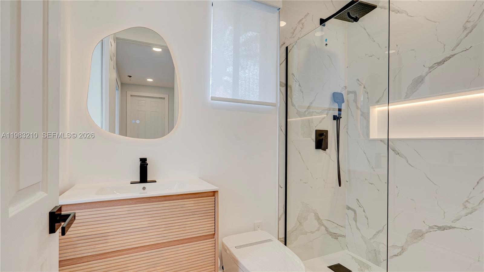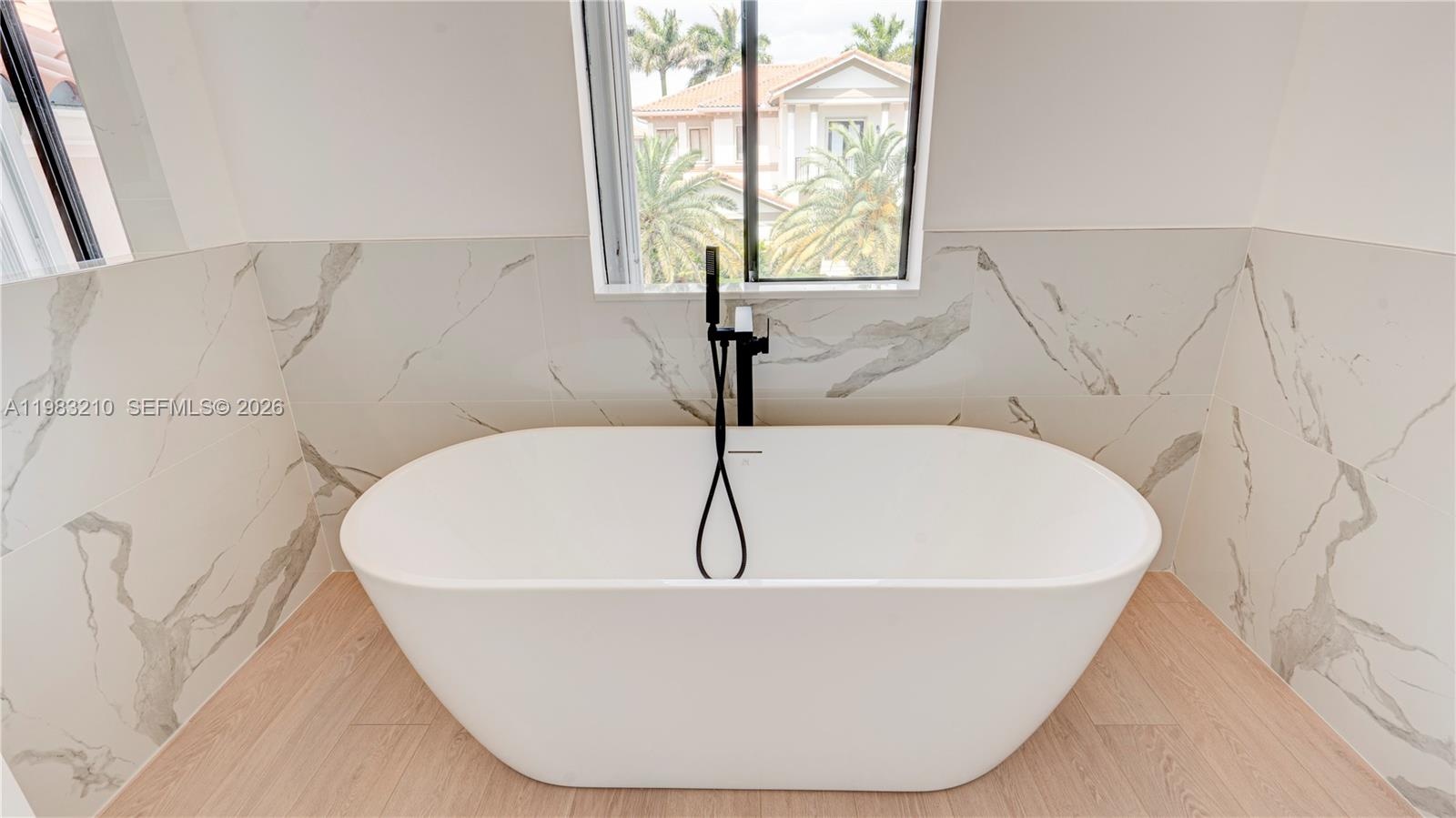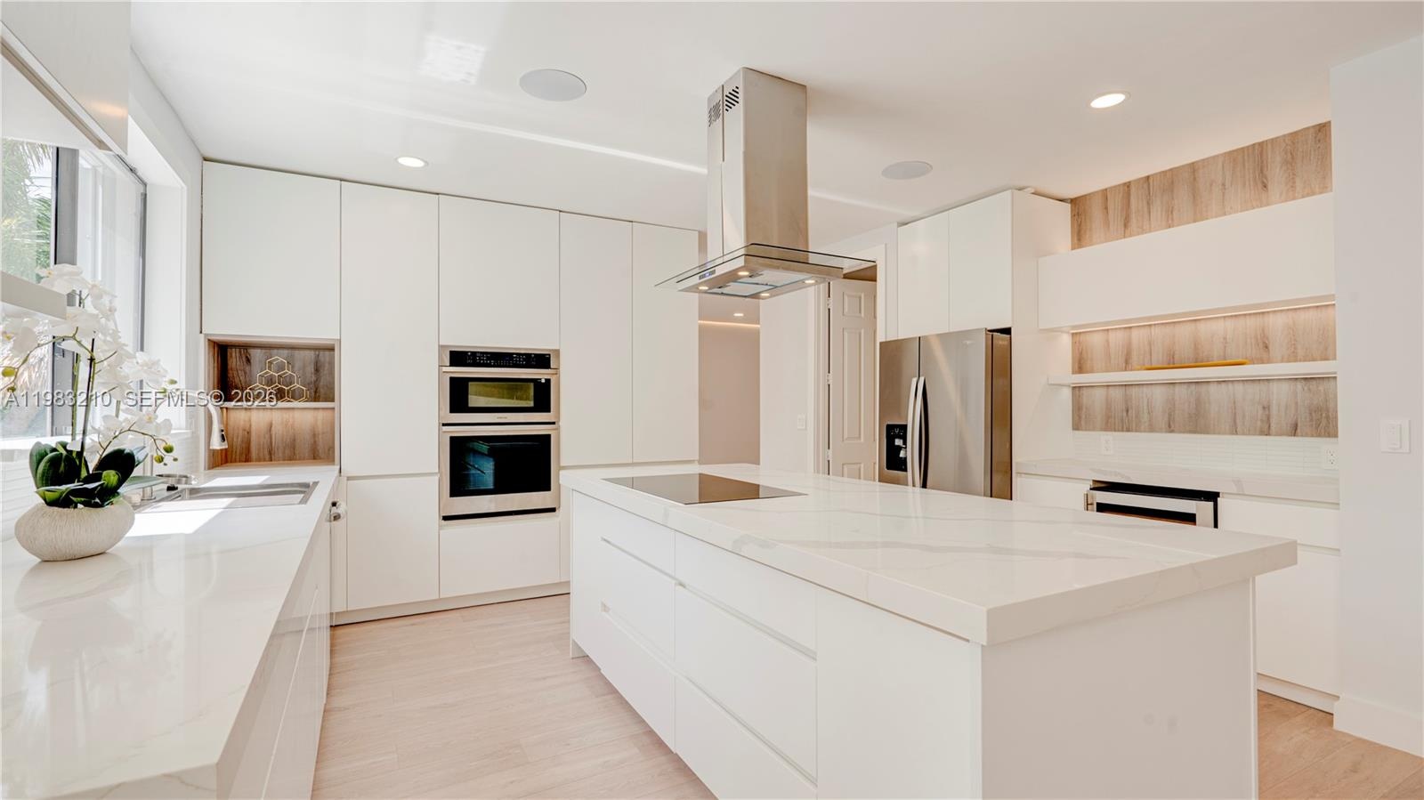 Fully newly renovated with luxury finishes & equipment throughout; Bright, modern interior with light tones & warm wood accents; Waterproof luxury vinyl flooring; Contemporary glass staircase; In-ceiling ambient LED light strips in every room; In-ceiling speaker installation; Kasa smart dimmer switches throughout the home, controllable via Alexa; Separate guest house w/ private bathroom; Beautiful pool area w/ lush tropical landscaping; Tikki Hut tropical patio lounge; Designer kitchen w/ premium finishes & thoughtful custom details: Thick marble countertops; Light-color palette with elegant wood elements; Large kitchen island w/ integrated LED lighting; Induction cooktop with hood; Soft-close cabinetry throughout w/ BLUM hinges; High-end interior cabinet drawer organization for cutlery, spices & more; LED-lit shelving; Wine cooler; Luxury bar sink with premium accessories, including waterfall faucet, cutting board; Spacious pantry w/ ample storage & Motion-sensor shelf lighting, all bathrooms have Floating vanities- Primary has double; LED vanity mirrors; Marble showers w/ floating glass enclosures; Smart toilets w/heated seats & automatic flush. MUST SEE!