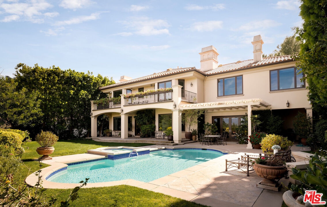 Set behind the prestigious gates of Mulholland Estates, this exceptional Beverly Hills estate embodies refined sophistication, scale, and privacy at the highest level. Positioned on a sprawling lot just under half an acre, along one of the community's most coveted cul-de-sac streets, the residence spans nearly 8,000 square feet, offering 7 bedrooms and 8 bathrooms designed for both grand entertaining and elevated everyday living. A dramatic double-height entry introduces the home with soaring ceilings, a sweeping curved staircase, and architecturally striking arched passageways. Expansive living spaces are thoughtfully oriented to capture serene greenery and sweeping views, creating a seamless connection between the interior and its natural surroundings.The chef's kitchen flows effortlessly into the main living areas, all overlooking a resort-style backyard complete with a private pool and trellised veranda, delivering a true indoor-outdoor lifestyle synonymous with Southern California luxury. The primary suite serves as a private sanctuary, featuring a fireplace lounge, an expansive walk-in closet, and a spa-inspired bath with dual vanities. A private terrace opens to breathtaking jetliner views, offering a quiet escape above it all. Additional amenities include a temperature-controlled wine cellar, a fully equipped gym, and multiple spaces designed for both relaxation and entertaining. Rarely does an estate of this scale, privacy, and caliber become available within Mulholland Estates. This is a true retreat in one of Beverly Hills' most sought-after guard-gated communities.