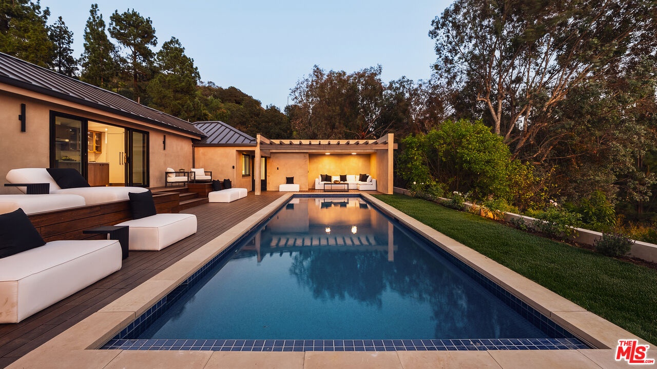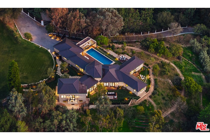BEST-PRICED DEAL IN MANDEVILLE CANYON ON AN OVER 3-ACRE LOT. Hidden at the end of a private road in prime lower Mandeville, The Rivers Estate is a rare 3.5-acre sanctuary that defies comparison. Located just minutes from the Brentwood Country Mart, but a world away, this one-of-a-kind property offers a lifestyle of absolute privacy and panoramic scale. This sophisticated single-story residence features 5 bedrooms and 6 bathrooms, defined by soaring vaulted ceilings and windows that frame the landscape from every vantage. Designed for the quintessential California lifestyle, the light-filled interiors transition effortlessly to curated gardens and expansive entertaining spaces. The kitchen and family room serve as the heart of the home, opening to a resort-style backyard. Here, a sparkling pool and outdoor kitchen are set against a backdrop of rolling canyons and mountains, stretching all the way to Catalina Island and the Pacific horizon. The romantic primary suite is a masterclass in serenity, capturing mountain and ocean vistas. This private wing offers two boutique-style dressing areas, a morning coffee bar, and a spa-inspired bath that spills out into a tranquil Zen garden. The estate's vast acreage is a playground for the senses, featuring an expansive lawn, perfect for grand-scale events or family play, a lush orchard with dozens of mature fruit trees, a gym, two-car garage, and generous parking for your guests. The Rivers Estate is not merely a residence; it is a serene, unparalleled lifestyle for those who demand both proximity and peace.