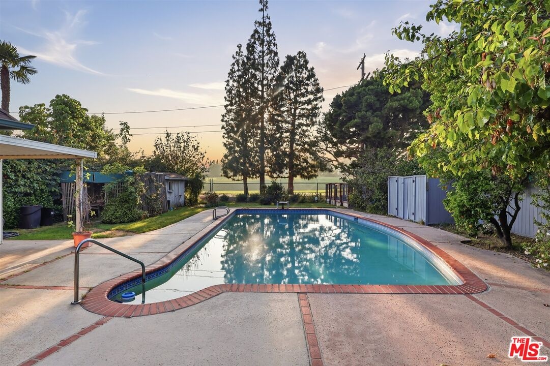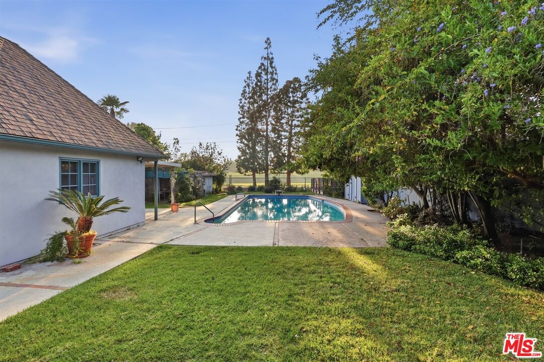 OFFERS DUE APRIL 6 at 3pm! RARE OPPORTUNITY TO OWN A GOLF COURSE adjacent home for sale in Hancock Park Proper! Feel like you are in the country everyday while you enjoy spectacular sunset views across the Wilshire CC golf course from your own deep backyard! This lush lot is over 13,500 square feet! Located near the private Los Angeles Tennis Club and conveniently close to Larchmont shopping & dining, this sweet country English is approached from a wonderful pre-HPOZ allowed semi-circlular driveway directly to the front doorsteps! A long gated driveway to the rear also can accommodate more off street parking. The entry hall leads to the formal living and dining rooms in the front and then to the vaulted ceiling family/great room with fireplace, built in bookshelves--all which overlook the rear yard, pool and golf course! The large updated gourmet center island kitchen with walk-in pantry and work space is open to the family/great room with those views also! Pocket doors off the great room lead to the hallway to 2 family bedrooms & bath plus the private Primary suite with walk in closet, dressing area with vanity, bathroom with double sinks and large shower. The primary bedroom at the back has windows with romantic built-in widow seat overlooking the yard/pool/golf course. Garage functions as room with bath. Put your finishing touches onto this long owned and much loved family home. These golf course adjacent homes rarely come up for sale and as of this listing date, no other is on the public market. Located in the Hancock Park HPOZ. Active voluntary membership HOA. Trust sale as-is. Security system with cameras. ALL OFFERS WIL BE REVIEWED AT 3pm ON APRIL 6th!!!!