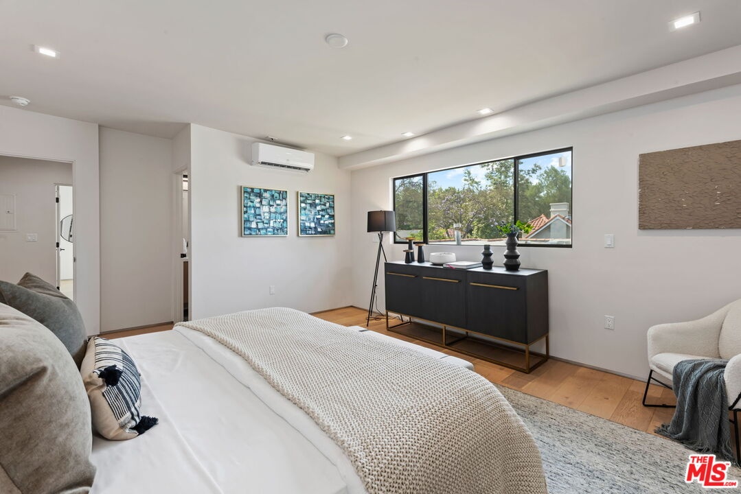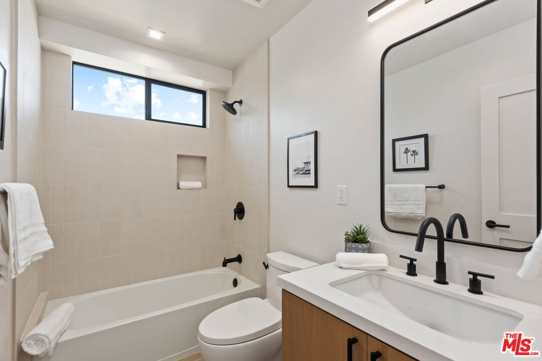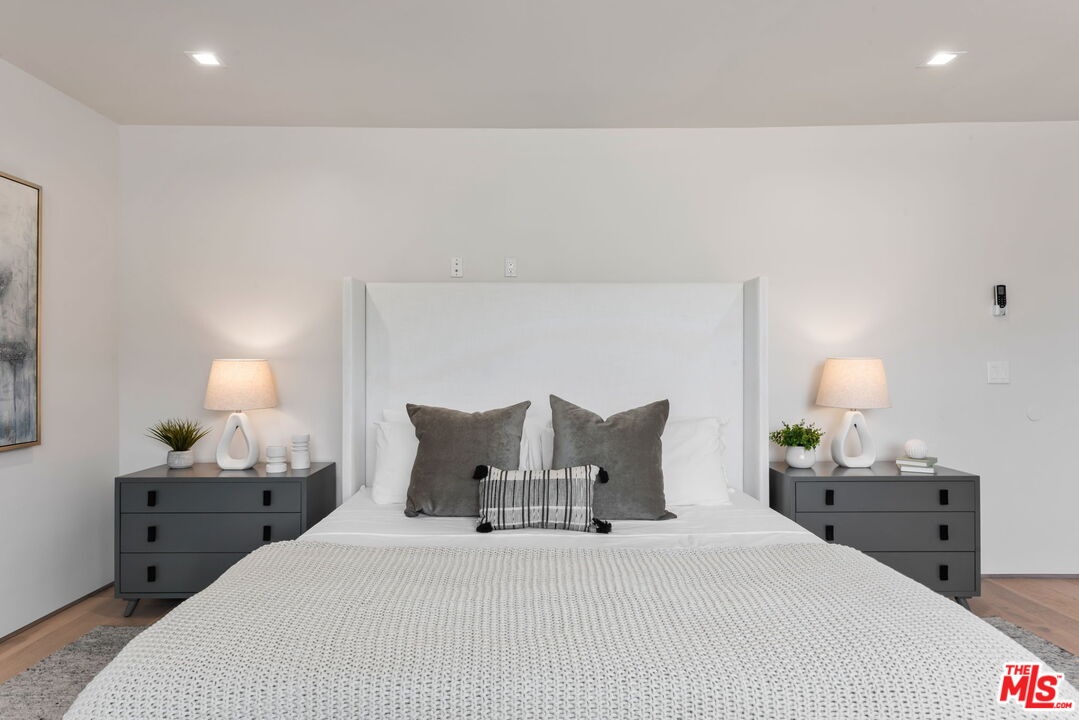 Located on a Sycamore-lined residential block triangulated between Hancock Park, West Hollywood, and Hollywood, find this light and bright 2 bedroom, 2 bathroom condominium in a down-to-the-studs remodeled 4-unit building completed in 2023. This front-facing, top-floor unit boasts a lengthy list of aesthetic and functional must-haves and high-end upgrades while being the largest unit in the building. Standouts include beautiful wide-plank oak floors, new Milgard dual-pane windows, 3-zone high-efficiency HVAC, all-new plumbing, electrical and roofing, and an in-unit washer and dryer. Highlighting the interior is a true chef's kitchen with custom cabinetry, Quartz countertops, and a Bosch gas range with 6 burners. The oversized primary suite features a walk-in closet and an en-suite bathroom with a large soaking tub. The large second bedroom looks out onto the lush street and has ample closet space. The property's location provides easy access to the best of LA, with a quick drive to the 101 freeway and a 93 Walk Score. Sprouts grocery, Tatsu Ramen, Mozza, Petit Trois, Tartine Bakery, Sightglass Coffee, and countless other neighborhood faves on the La Brea, Santa Monica, Highland, and Melrose strips are all within a few blocks. The building has a safe and secure gated attached parking lot with 2 reserved, side-by-side covered spaces with a NEMA 14-50 outlet and easy, permitted guest parking on the street. The front of the building has a communal dog run with an eco-friendly lawn. HOA covers water, sewage, trash, landscaping, and an exterior security camera system. Enjoy the ultimate in comfort and convenience in this beautifully appointed condominium, where luxury meets functionality in a prime Los Angeles location.