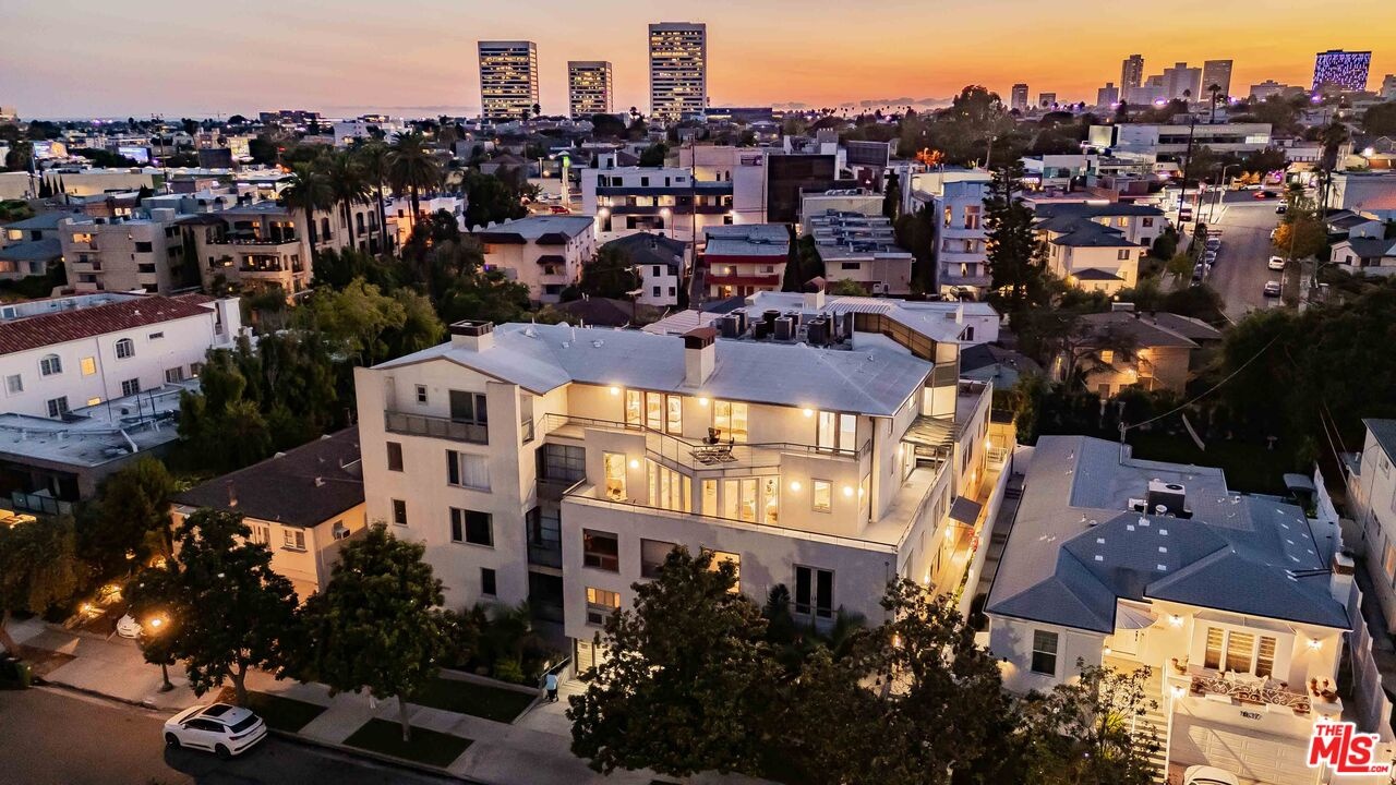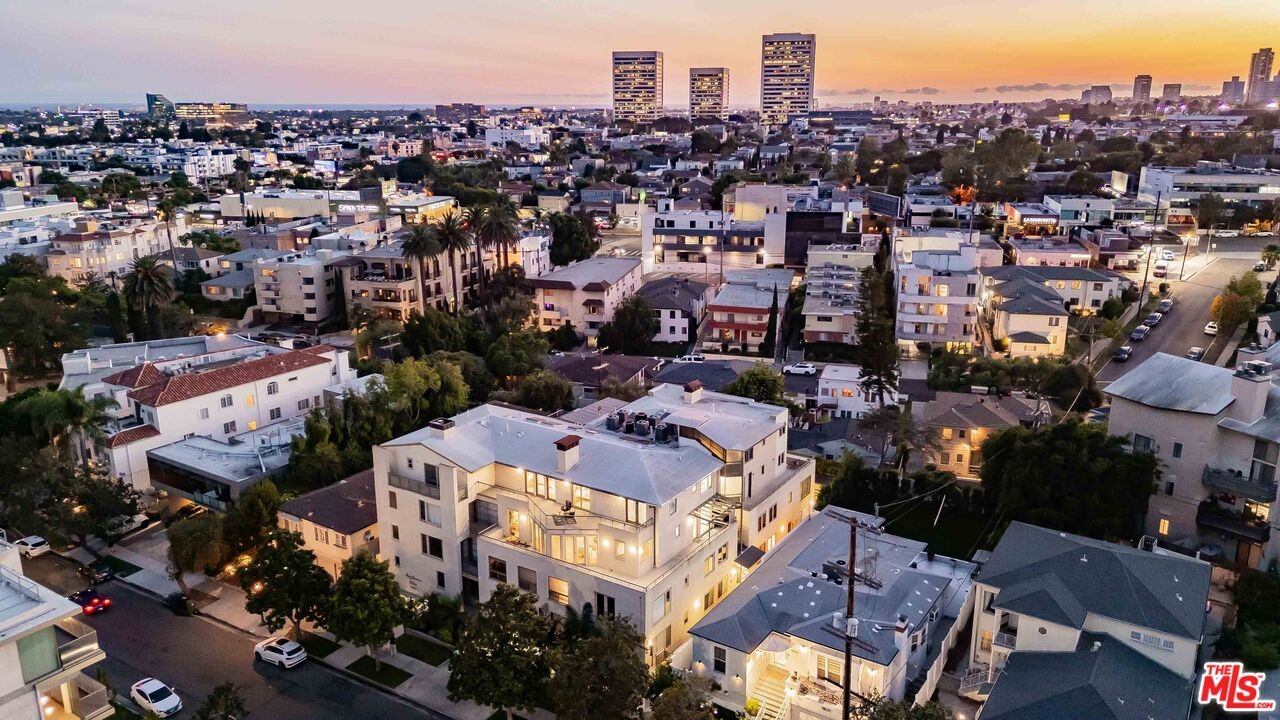 Incredibly Rare Opportunity for a 4 bed/4.5 bath Corner Unit 2-story Penthouse unit in prime North of Santa Monica Blvd. mid-block location in desired smaller 8-unit building. Stunning 2,800+sf unit that feels like a home and filled with incredible natural light with desired indoor-outdoor flow from each room to large balconies on each level. Double doors into formal entry with powder room opens to stunning open floor plan with high ceilings and wall of windows overlooking balcony. Spacious formal dining room with soffit ceiling opens to family room and living room, and double French doors to large front facing balcony, ideal for entertaining. Chef's kitchen with island, breakfast bar, gas range and double ovens and side door to Barbecue and outdoor seating area. All bedrooms with ensuite bathrooms, including 1 bedroom downstairs with built-in desk and 3 bedrooms upstairs, each with access to large balcony. Primary suite with fireplace and French door to front balcony, oversized walk-in closet and primary bathroom with 2 skylights, dual sinks, separate bath and shower. Additional features include upstairs open loft bonus space, hardwood flooring downstairs, 4-secured parking spaces, in-unit laundry room with storage, 3 fireplaces (living, family and primary suite). Common area includes sparkling pool/spa, sundeck, rec room and gym with sauna. Close proximity to UCLA, Westwood Village and Westwood Blvd. retail and restaurants, Bristol Farm, Century City Shopping Center and Beverly Hills. Fairburn Elementary. Move-in ready!