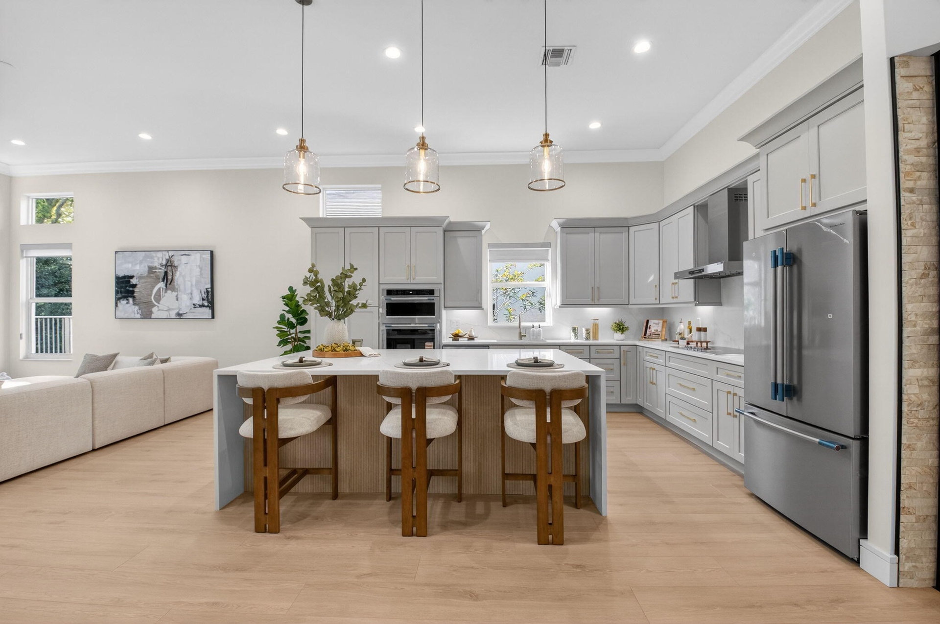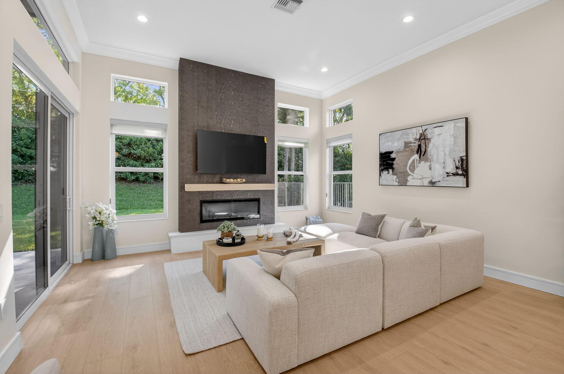 Welcome to 9722 Napoli Woods Lane, a stunning fully remodeled residence located in the highly desirable guard-gated community of Saturnia Isles. Sitting on a quiet tree-lined street, this exceptional home is being offered completely furnished, including all furniture, appliances, décor, rugs, and window treatments—truly everything you see comes with the home. Every single item in the home is brand new and has never been used, offering a true turnkey, untouched living experience. Just bring your toothbrush and move right in. From the moment you enter, you are greeted by soaring ceilings, abundant natural light, and elegant woodwork and moldings that elevate the space with warmth and sophistication. The open-concept design seamlessly connects the kitchen and living areas, creating the perfect environment for both everyday living and entertaining, while a separate dining room adds a refined space for gatherings. Every detail has been thoughtfully curated, with high-end finishes and professionally designed furnishings that create a sophisticated and luxurious aesthetic throughout the home. This property has been meticulously updated, featuring brand new impact windows, two new AC systems, and a roof installed in 2020, offering both peace of mind and modern efficiency. The spacious two-car garage adds everyday convenience, while the community itself offers low HOA fees along with exceptional amenities in a secure, beautifully maintained setting. Ideally located just minutes from shops, dining, and entertainment of Downtown Delray Beach, as well as top-rated Boca Raton and Palm Beach County schools. This is a rare opportunity to own a completely turnkey luxury home that perfectly blends style, comfort, and an unbeatable South Florida lifestyle.