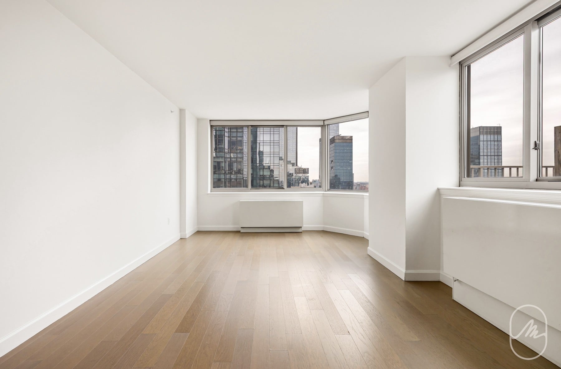 46th floor sprawling two bedroom flex to three permitted with expansive views, bay windows, and large private terrace now available.