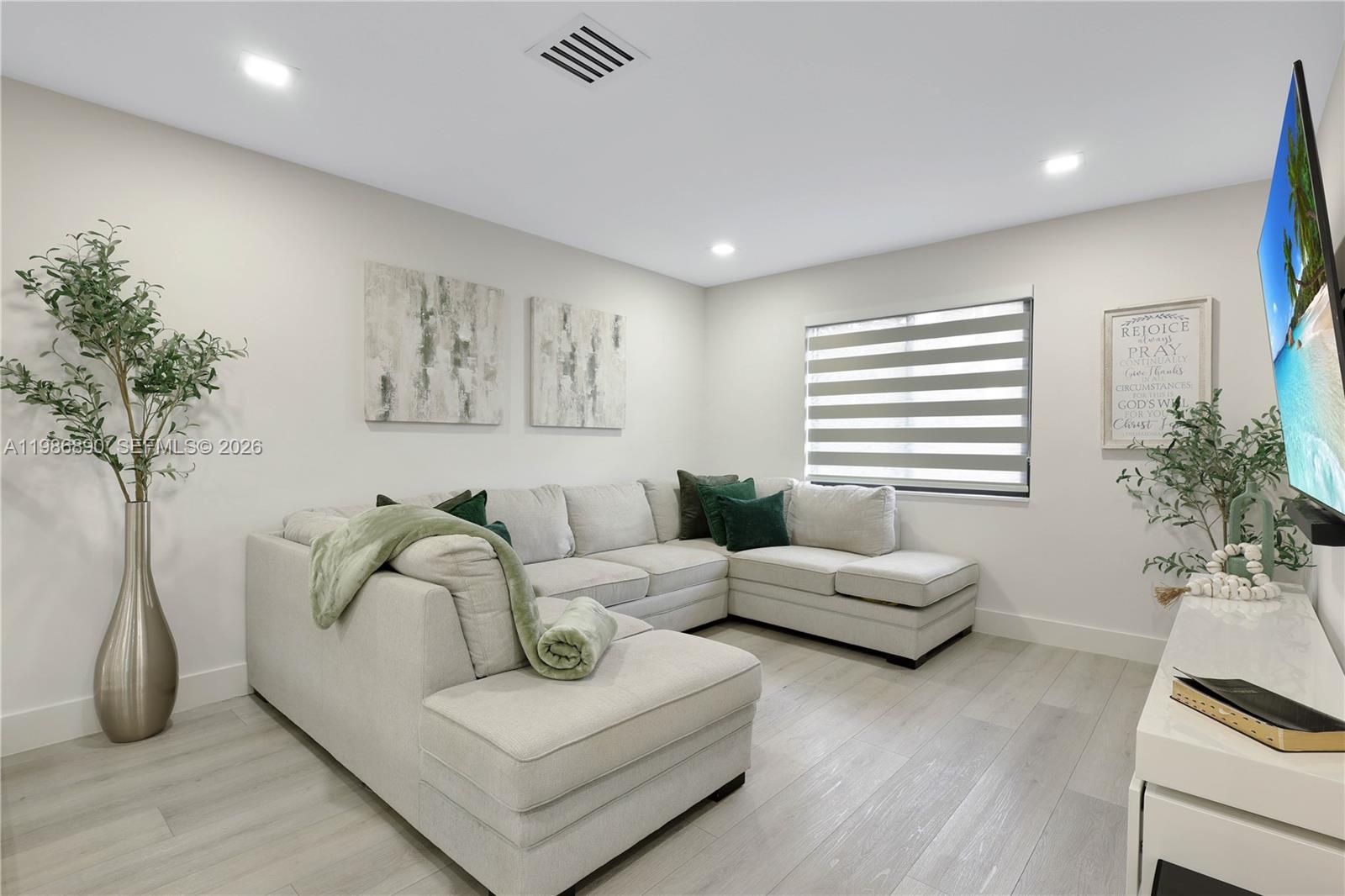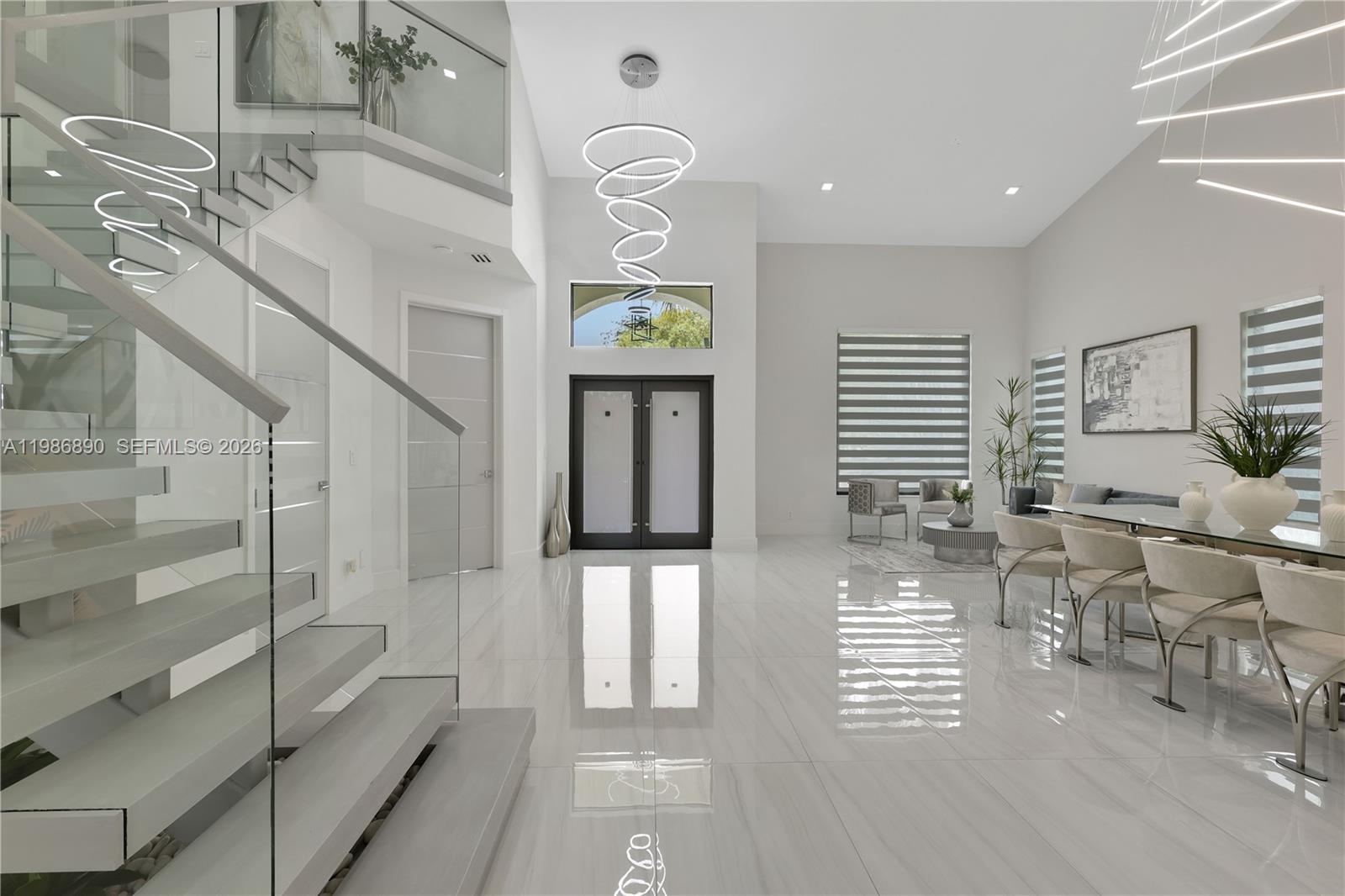 Exquisite, fully renovated residence showcasing a sleek modern-contemporary design. The home features impact windows and doors, impeccable craftsmanship, and high-end finishes throughout. Highlights include striking floating stairs, elegant porcelain flooring, designer bathrooms, and premium modern appliances. This turnkey property offers the perfect blend of sophistication and comfort. Don't miss the opportunity to explore this gem in person