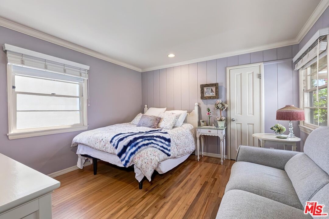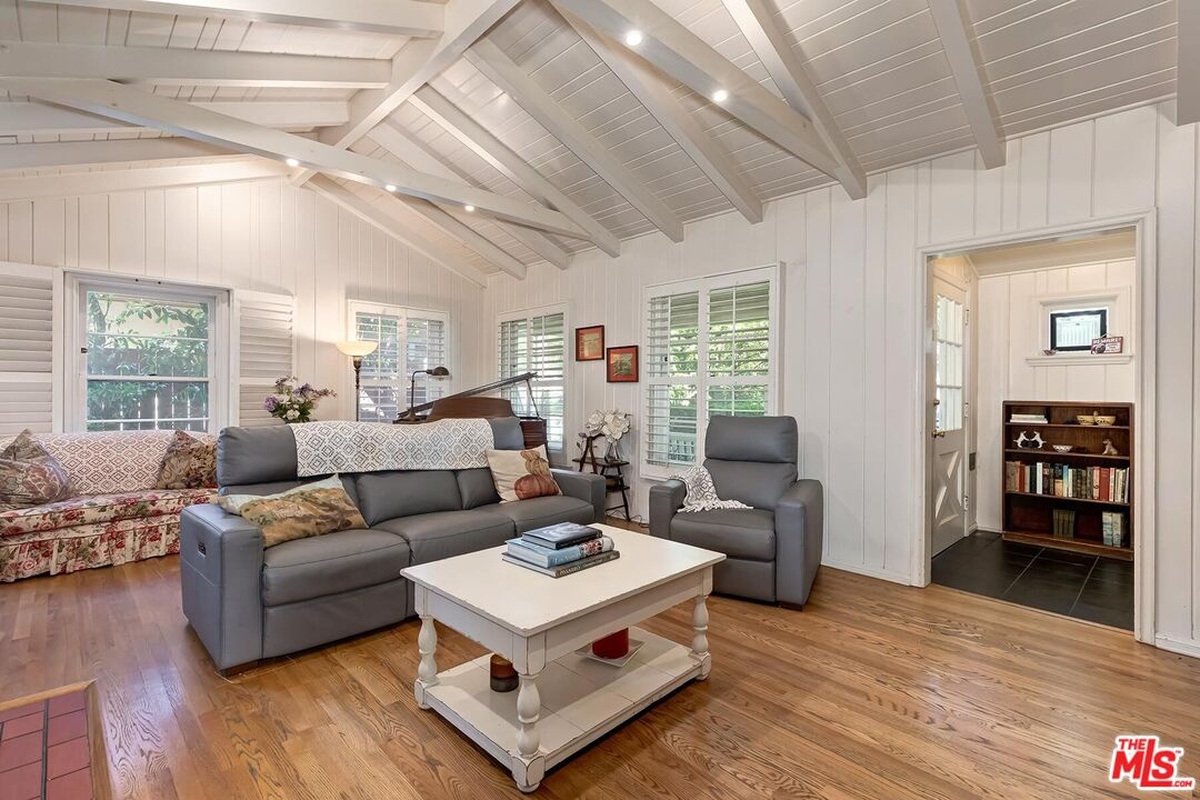 Charming Mid-Century Home in Coveted Westside Village. Welcome to this warm and inviting home nestled in the heart of Westside Village. A covered front porch overlooks the grassy yard, mature trees, and vibrant birdlife, where finches and hummingbirds create a peaceful, nature-filled setting. Inside, a spacious living room showcases rich hardwood floors, a classic brick fireplace, and a stunning vaulted wood-beamed ceiling. The bright, airy kitchen mirrors this architectural charm with its own vaulted ceiling and skylight, and features stainless steel appliances, a peninsula with counter seating, and glass doors that open seamlessly to the covered back patio, perfect for indoor-outdoor living. A formal dining room offers flexibility as a potential fourth bedroom, office, or creative space. With three bedrooms, including the primary suite with hardwood floors and a private en-suite bath, back bedroom, and separate corner bedroom that enjoys direct access to the backyard through its own glass door. Step outside to a beautifully landscaped backyard retreat featuring a flagstone patio, grassy lawn, intimate deck area, and lush greenery, including bougainvillea, hedges, and mature citrus trees: lemon, tangerine, and orange. The detached garage presents endless possibilities as a gym, art studio, or future ADU conversion. Ideally located just minutes from Trader Joe's and the shops, restaurants, and parks of downtown Culver City, this home also offers access to highly regarded Clover Avenue Elementary, celebrated for its strong academics and close-knit community. Amazing Westside Location!