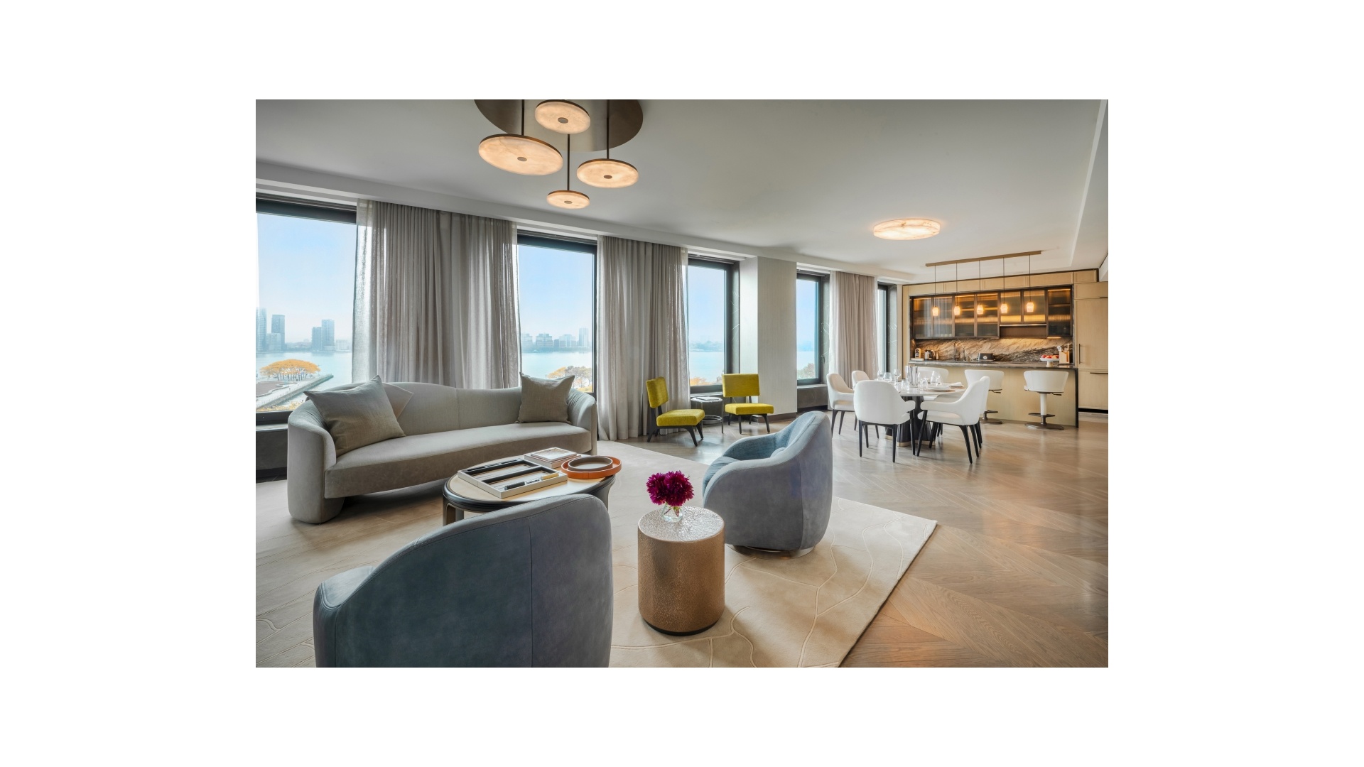 Residence 6 offers a three-bedroom, four-bathroom layout, with 2,205 sq. ft. (205 sq. m) of thoughtfully designed living space with sweeping views of the Hudson River.