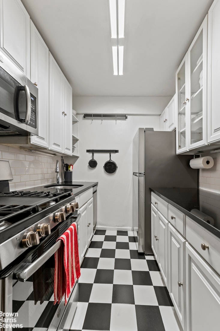 Welcome home to this mint, move-in-ready large one-bedroom co-op perfectly situated in the heart of the Upper East Side. A thoughtful layout and exceptional storage make everyday living effortless. Dark hardwood floors flow throughout, complementing a newly renovated kitchen with modern appliances, a generous dining area, and bonus space ideal for a home office.The spacious bedroom features two windows, custom closets, and ample storage. The flexible layout allows for an easy conversion to a second bedroom or nursery.Residents enjoy full-service amenities including a full-time doorman, live-in super, first-floor laundry, garage, and storage lockers.