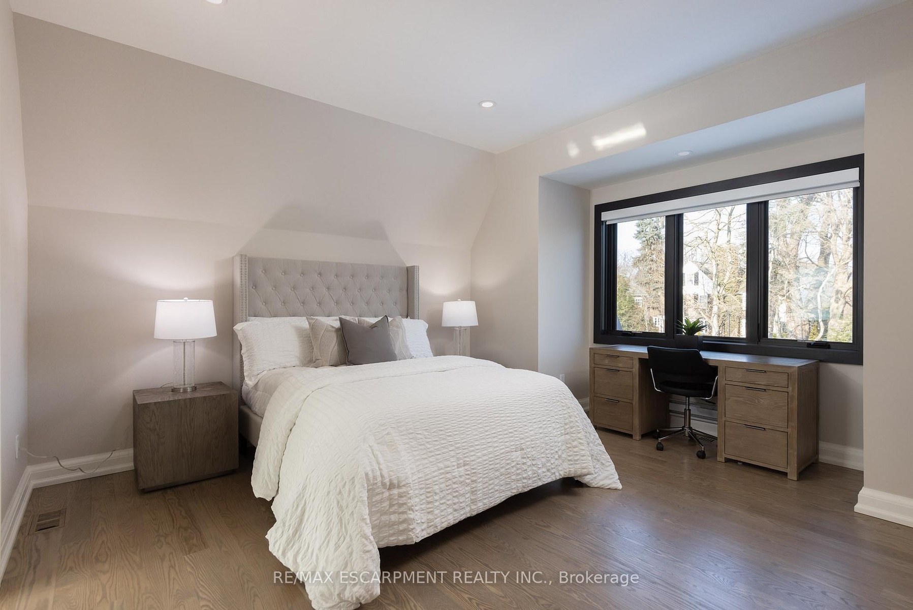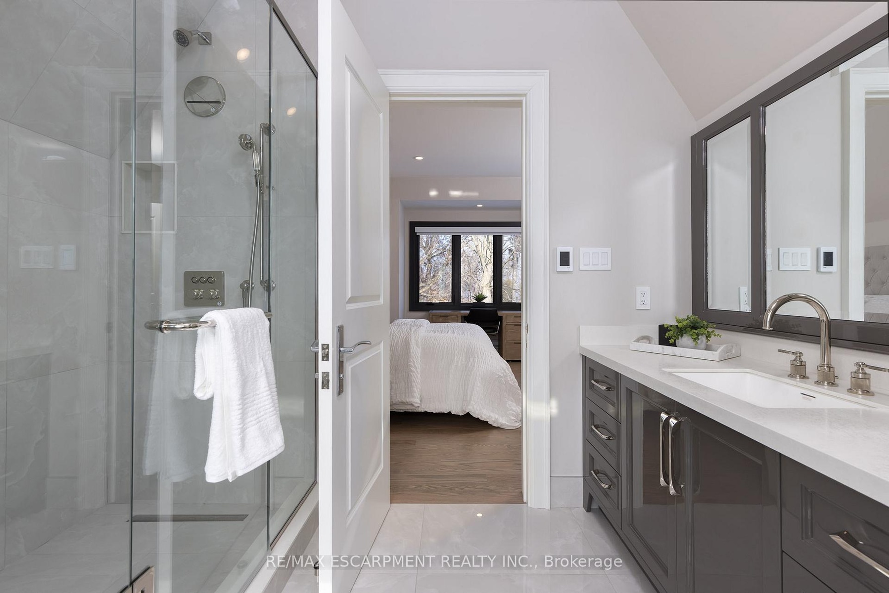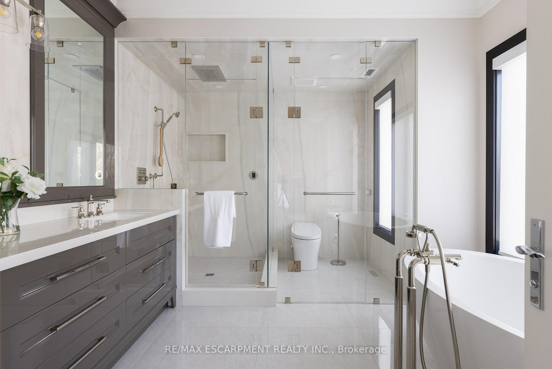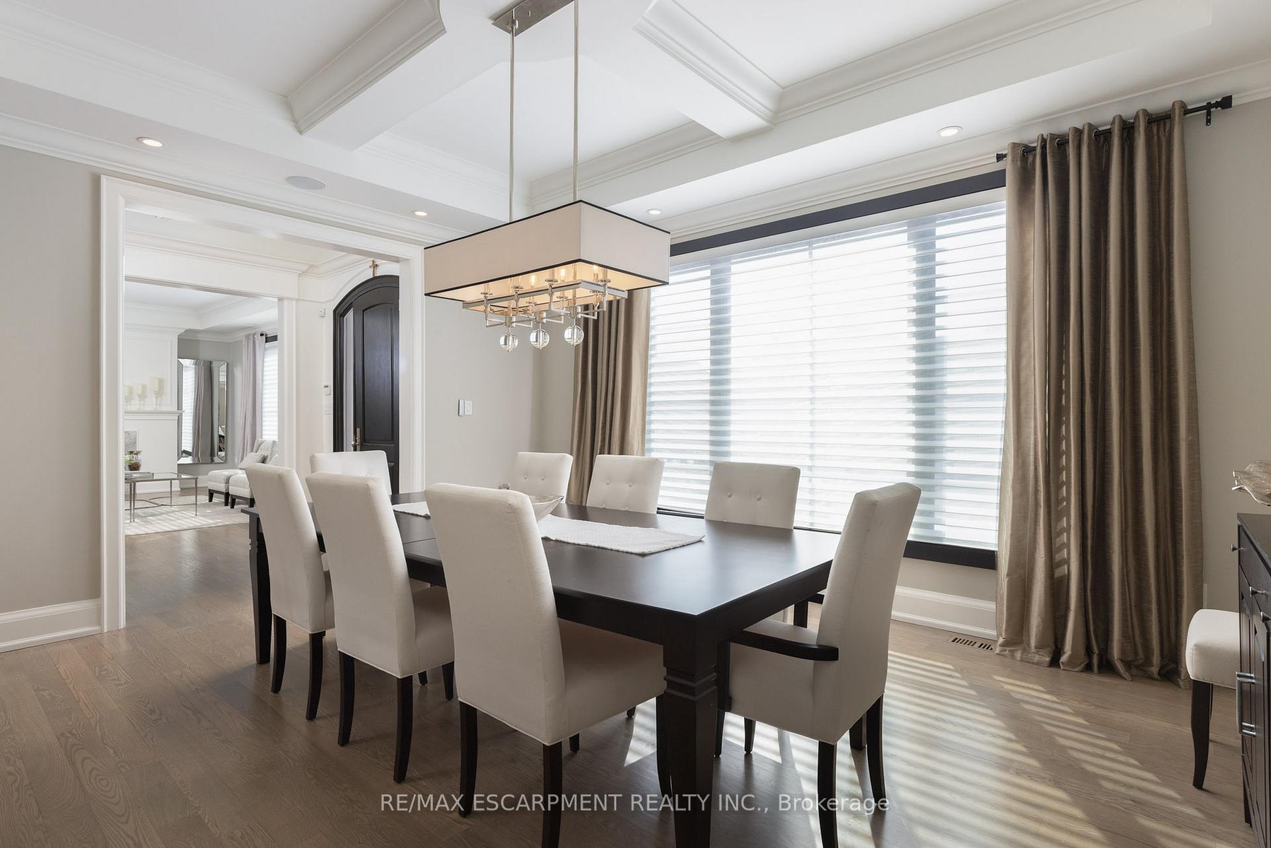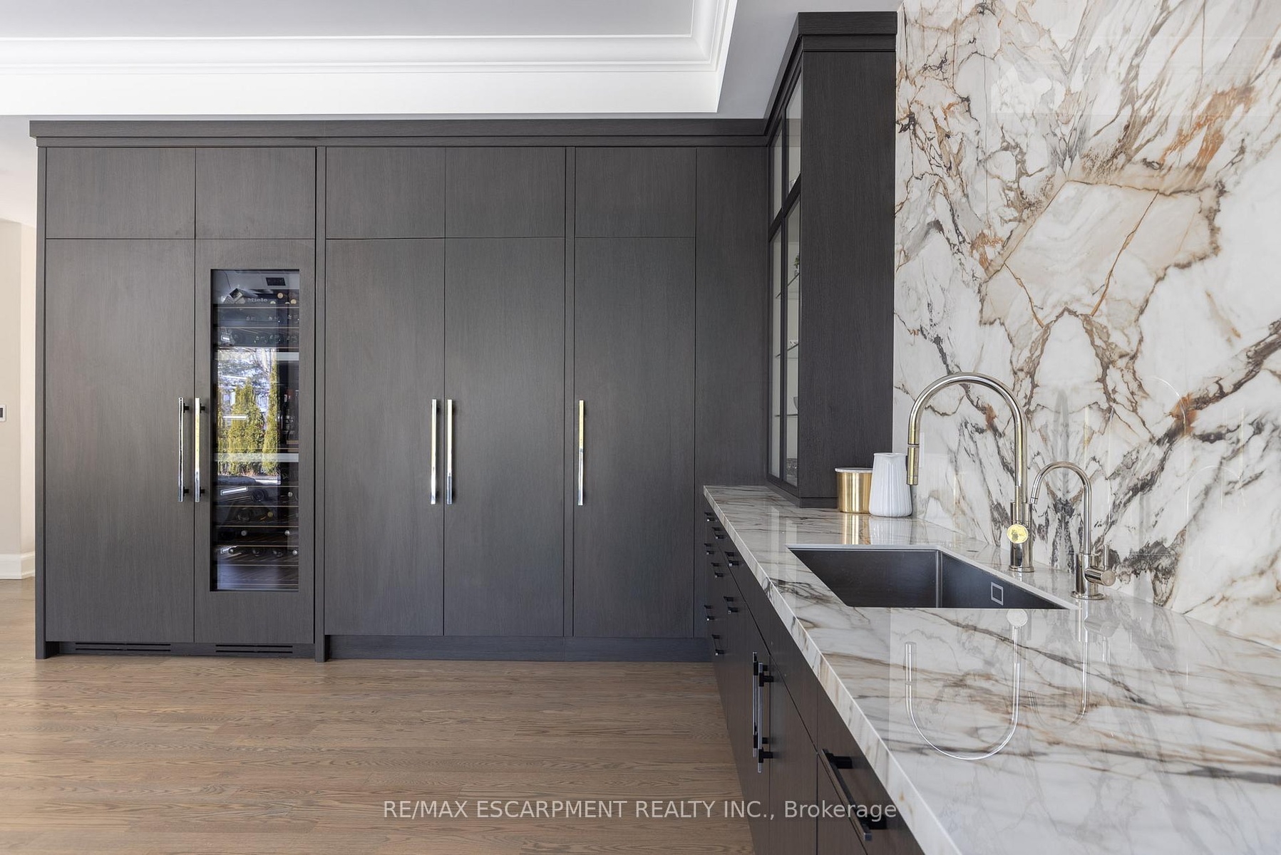 Located on the prestigious private lane of Lambert Common this masterful 8300 square foot plus home includes a seamless 2024 addition from the original 7 year old build. This custom residential design stuns with grand proportions and meticulous detail. All three levels feature 10-foot ceilings defining the home by its impressive rooms and an atmosphere of space and luxury. The entrance is both welcoming and breathtaking with it's incredible moldings and crystal chandelier casting diamond glints across the foyer flanked by the living and dining rooms. Stepping through to the back of the house, you will be dazzled by the panoramic views of wall to wall glass overlooking the two heated patios. The culinary wing is divided into two distinct zones for the ultimate hosting experience: The Showcase Kitchen: A visual centerpiece featuring a dramatic backlit stone wall that serves as a piece of living art. A 14-foot island, elegantly underlit to create a feeling of light providing sophisticated seating for six to enjoy the stunning kitchen. The Prep Kitchen: Positioned discreetly at the back of the main floor, this secondary kitchen allows for preparation to remain out of sight, ensuring the primary living space remains pristine. The home boasts five bedrooms with walk-in closets and ensuites. The Primary Suite is a dedicated sanctuary with his & hers walk-in closets, fireplace, and private bath, all oriented specifically to provide a serene, view of the lake, allowing the water to serve as a constant, tranquil backdrop. The upper level laundry room is spectacular an appliance package that includes a steam closet. The Entertainment & Wellness Lower Level Maintaining the same 10-foot ceiling height as the upper floors, the lower level is a destination unto itself. This level is fully equipped for a high-performance lifestyle, featuring and private glass enclosed gym, theatre room, open recreation room, secondary laundry suite and sixth bedroom with private office.