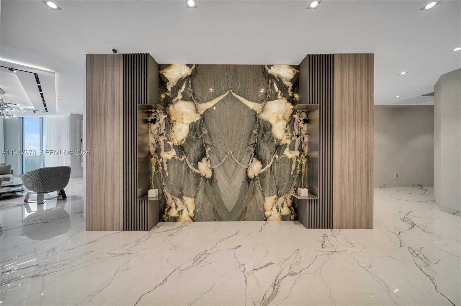 Indulge in an extraordinary level of luxury and sophistication where this one-of-a-kind, Turn key SKY-Villa unveils 180-degree panoramic ocean, Miami skyline, Intracoastal views. This completely reimagined 5,086 sq ft residence embodies a masterful fusion of elegance and contemporary design, 5 bedrooms & family room, 4.5 baths, three grand terraces. Impeccably crafted with Italian porcelain, striking quartzite accent wall, custom cabinetry by Brazil’s Dell Anno, this fully furnished residence features meticulously curated designer pieces from Roche Bobois, Ferre, Cavalli. Miele appliances, wine cooler with a cigar humidifier, Lutron smart home technology, Luminares Delta lights, motorized window treatments. Luxury amenities include: Pool & beach service, state of the art Gym , Spa, poolside restaurant, wine and cigar rooms, oceanfront breakfast room , professional 2 tennis & 2 racquet ball courts, 1 basketball court , movie theater, party room with catering kitchen , consierge , valet service