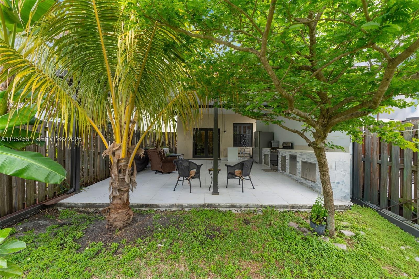 This meticulously upgraded home in one of Homestead's sought-after communities, where modern design, outdoor living, and location come together in one extraordinary package. Step through the foyer into a sunlit open floor plan where oversized ceramic tile flows beneath designer lighting, and a stunning kitchen commands attention. Granite countertops, a hand-laid chenille stone backsplash, and refrigerators with water filtration systems and stainless steel appliances complete the look. A half-bath completes the main floor perfectly. Upstairs, the master retreat delivers everything you need: a walk-in closet, a ceiling fan, and a spa-inspired ensuite with dual sinks and a glass door shower. A hallway bathroom serves the additional two bedrooms. A dedicated laundry room upstairs. The backyard opens up — and nothing compares. Fully fenced and sprawling across a 3,550 sq ft lot, this is the outdoor space buyers search for and rarely find. A 25x25 ft pergola with ceiling fans and roll-down shades, a full quartzite outdoor kitchen, refrigerator, and a lush private yard flourishing with Mango, Avocado, Mamey, Lemon, Coconut, and Plantain trees. This is not just a backyard; this is your own private resort. Extras. new vanity. Plantation shutters. Resort-style community amenities include a clubhouse, security patrol, Olympic pool, gym, playground, and walking trail — all with low HOA fees. Minutes from the Turnpike, US-1, Publix, Black Point Marina, WAWA, Chick-fil-A, and ALDI's.