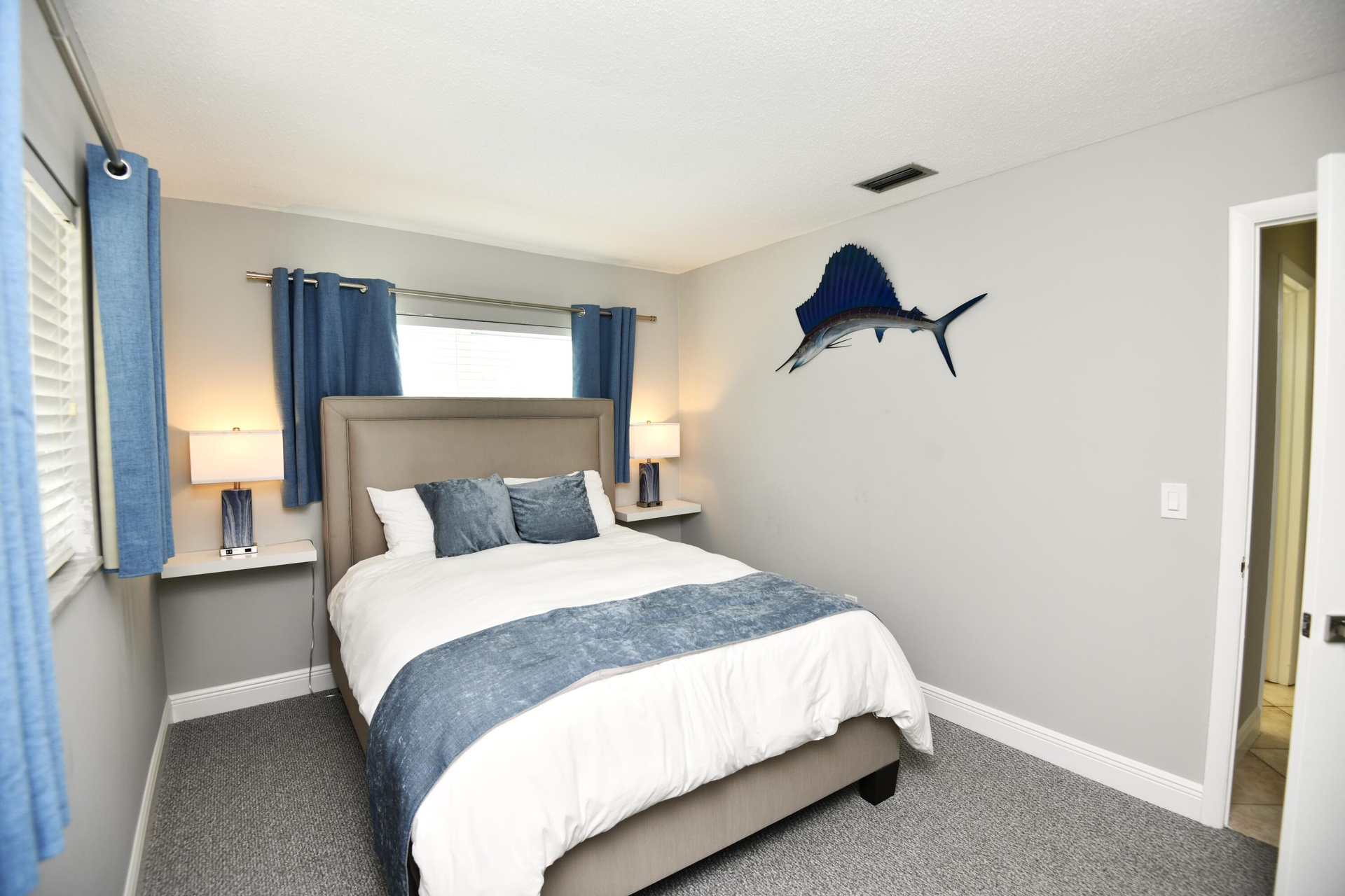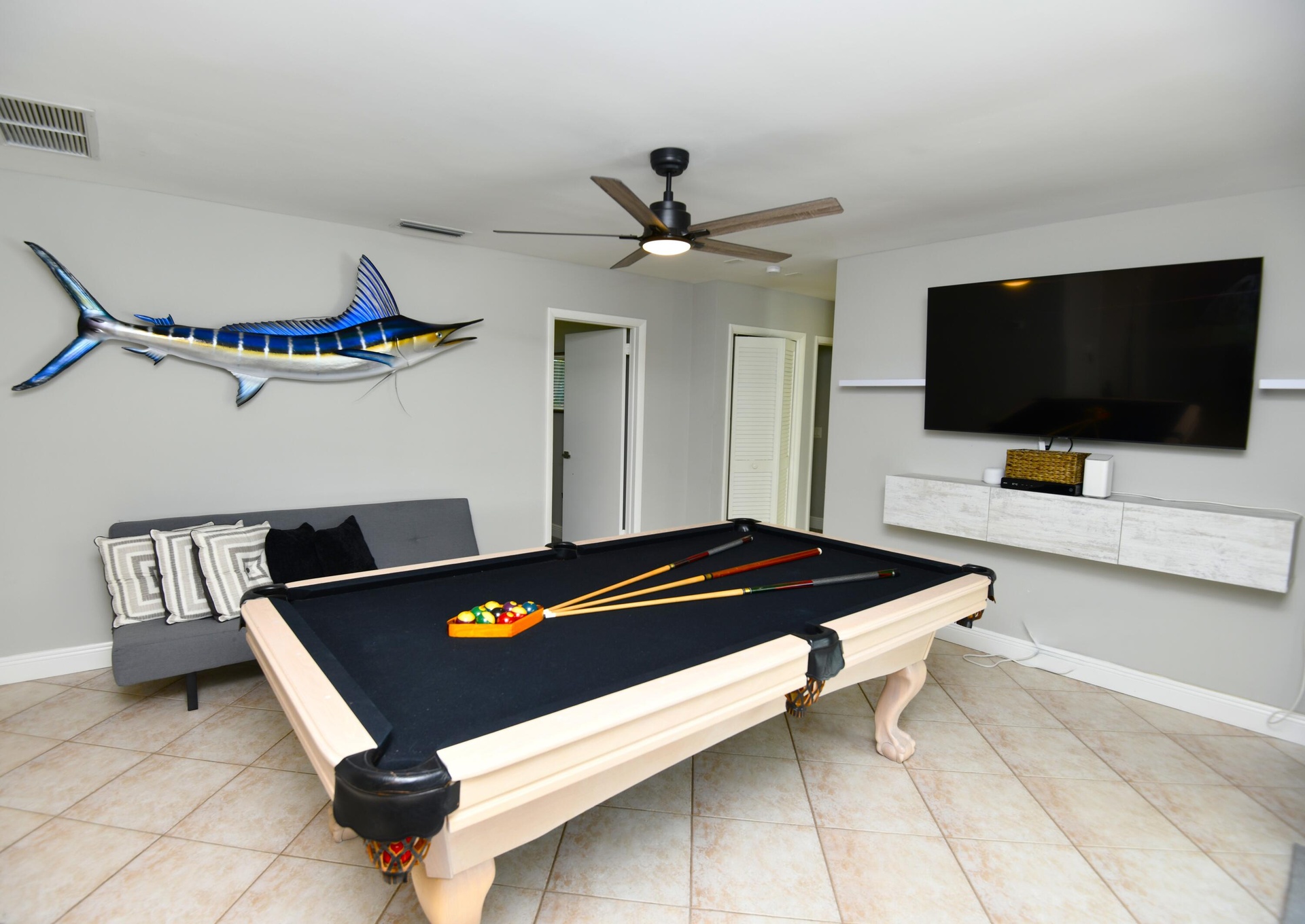Experience coastal living in the heart of Palm Beach Shores! This 4 bed, 3-bath home is located in a quiet, pristine beach community just two blocks from one of Florida's top-rated beaches, across the street from the #1 sport fishing fleet at the world-famous Sailfish Marina where you can catch sunsets with waterfront dining and Tiki bar cocktails and close Phil Foster Park, one of the US top-ranked diving and snorkeling experiences. This one-story split floorplan features a spacious living room, separate entertainment room, Jack & Jill bath, cabana bath, interior laundry, 2-car garage, updated master suite with dual sinks, walk-in shower and walk-in closet with direct access to a covered patio with a heated pool, cabana bath and tropical landscaping. Available furnished or unfurnished this is your opportunity to start living the island lifestyle today