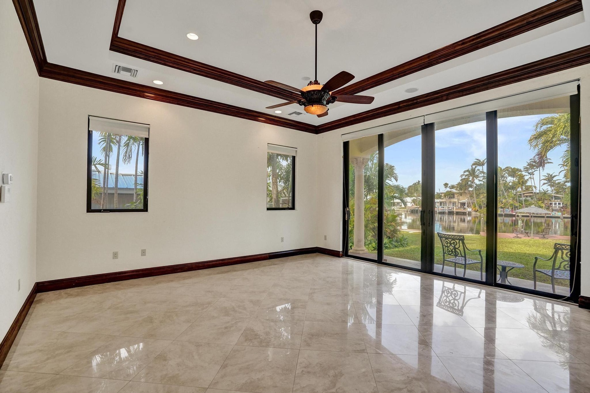 Situated on an expansive 19k sq-ft waterfront lot, this private paradise offers 45 feet of dockage and breathtaking, unobstructed views of the Middle River. Spanning 4,795 sq ft, this home offers 3 beds/3.5 bath, with sweeping water views showcased through floor-to-ceiling impact glass, soaring volume ceilings and rich custom woodwork throughout. Designed for true South Florida living, the outdoor space features a custom lagoon-style pool and waterfall, expansive covered patio with an outdoor kitchen ideal for year-round entertaining. Launch your boat, kayak, or paddleboard directly from your backyard and enjoy peaceful waterfront living just moments from everything. Located in highly sought-after A+ Bayview School District and less than one mile from the beach, shopping and restaurants.