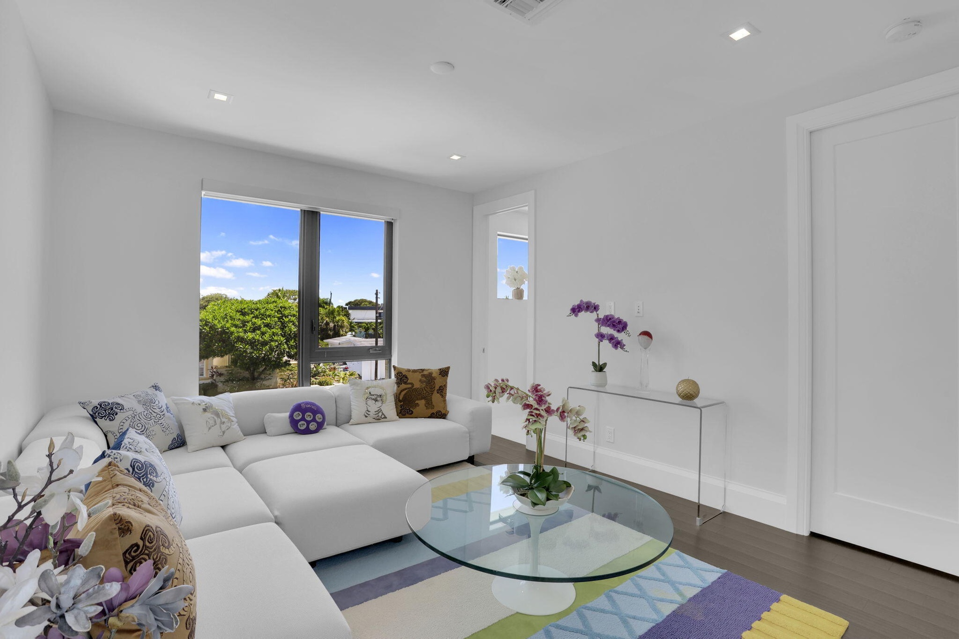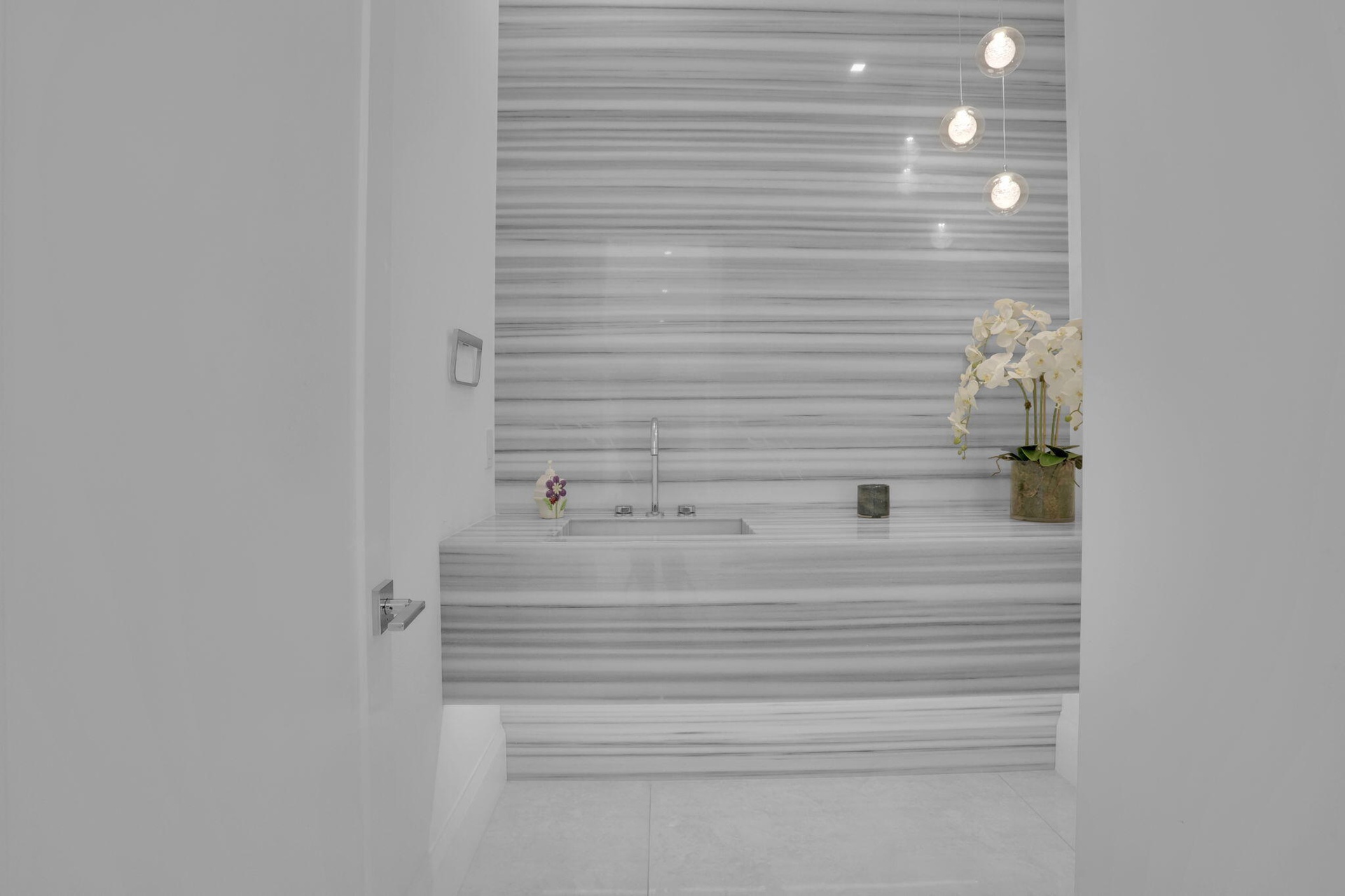 Situated in one of East Boca Raton's most coveted neighborhoods, this five-bedroom, five-and-a-half-bath contemporary estate lies just steps from Mizner Park and moments from the beach. Located in the heart of the Golden Triangle, this property offers unmatched walkability to Boca's top restaurants, shops, and cultural attractions—all while tucked into a quiet, tree-lined street. Inside, clean modern lines and walls of glass create a bright, airy feel throughout. A dramatic floating staircase beneath a glass skylight anchors the entry, setting the tone for bold, sophisticated living. The open-concept main floor features a sleek chef's kitchen with professional-grade appliances, a waterfall-edge bar, and spacious living and dining areas perfect for entertaining. Glass sliders open to a private backyard oasis with a resort-style pool, integrated Jacuzzi, covered patio, and lush tropical landscaping. Upstairs, discover three en-suite bedrooms and a luxurious primary suite complete with spa-inspired bath, oversized walk-in closets, a morning bar, and floor-to-ceiling windows that bring the outside in. Additional features include a two-car garage, impact windows and doors, and smart home technology throughout. A rare opportunity to own a modern estate just a short stroll from downtown Boca's vibrant lifestyle.