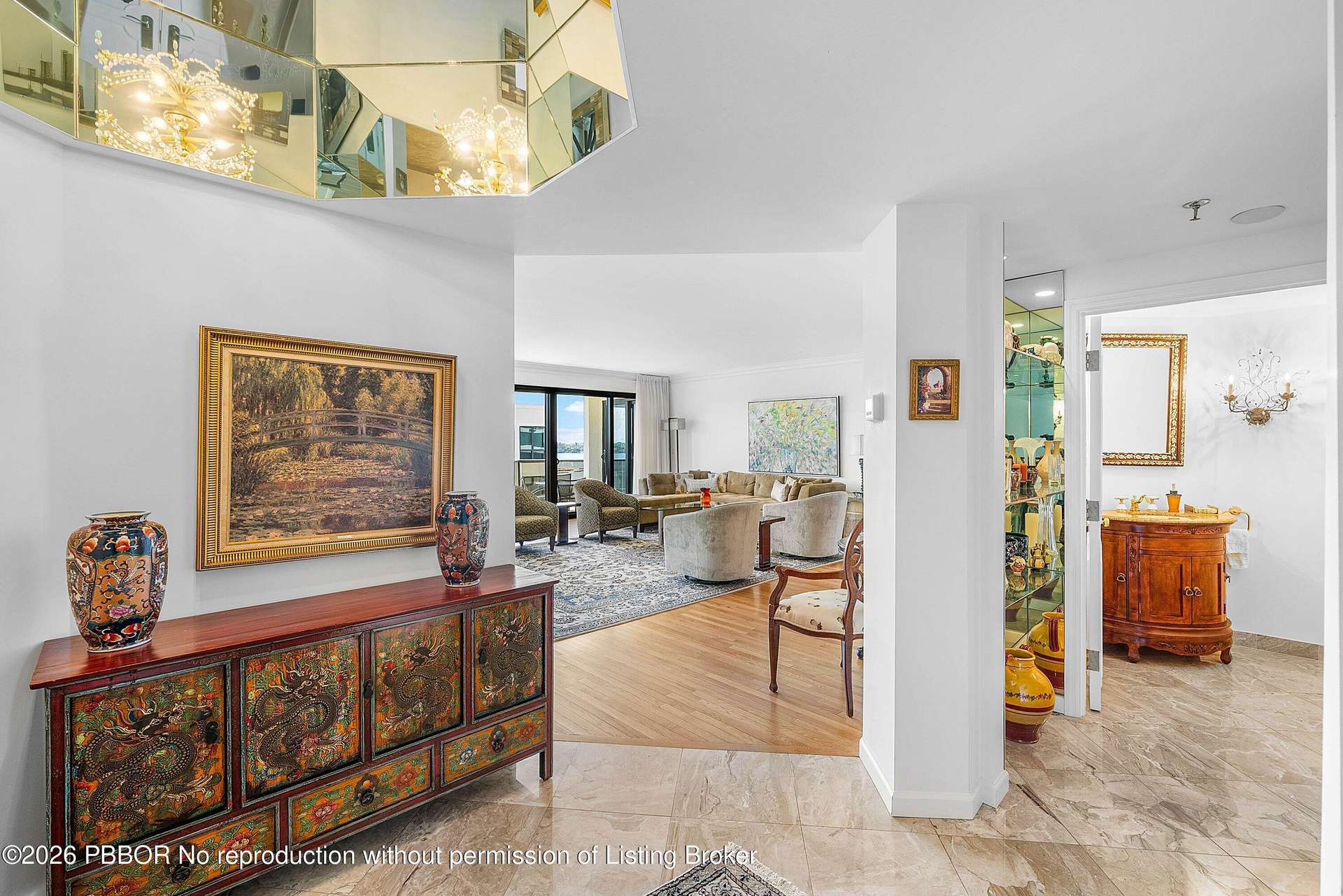 Bring your boat and your offers! Experience unparalleled resort style luxury in this elegant penthouse in Palm Beach. This corner unit offers stunning views of the Atlantic Ocean and the Intracoastal Waterway. With only two units on this floor, enjoy ultimate privacy and tranquility. With 2,497 sq. feet, this sophisticated 2-bedroom, 2 .5 bath residence features 9-foot ceilings, gleaming hardwood floors and three balconies. The beautifully updated kitchen has Thermador appliances and an island for eating. The updated kitchen and bathrooms add a modern touch to this coastal retreat. Enjoy the convenience of an in-unit laundry room which includes a second full-size refrigerator. Included in the sale is a large boat slip accommodating a vessel up to 39 feet. Residents enjoy world-class amenities including an oceanfront saltwater pool with towel service, tennis and pickleball courts, three fitness centers, and 24-hour concierge security. Complete with garage parking and a prime location near elite dining and shopping, this is the pinnacle of Palm Beach living.