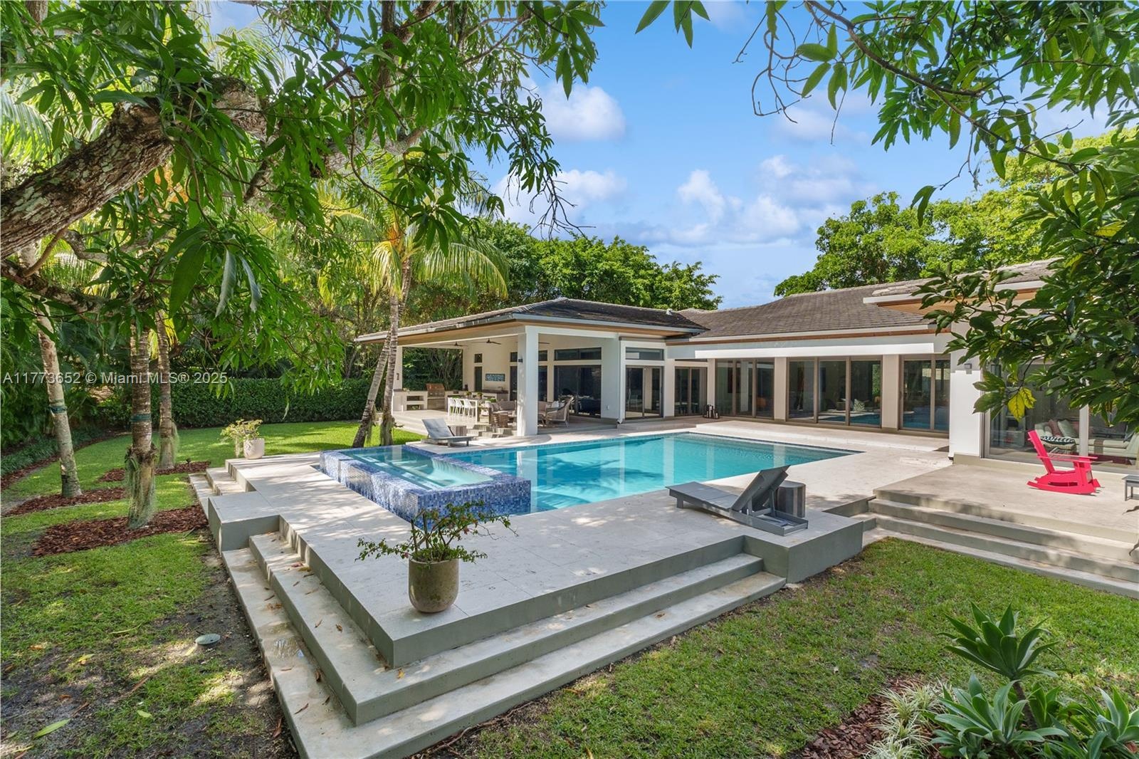 ew waterfront custom home with 135’ on Gables waterway in Coral Gables. Experience the Double height home and ultimate indoor/outdoor living with open floorplan that flows seamlessly in a total area of 6,227 SF. Located on a 20,520 SF corner lot in desirable South Gables neighborhood close to A+ rated schools, the home has 5 Bed/5 Bath, modern and spacious kitchen with Top-of-the-line appliances and open to expansive family room, office, GYM, laundry room and 2 car garage. Idyllic outdoor spaces offer a summer kitchen & heated pool overlooking a garden and the Gables waterway. Big-boat dockage. Coral cut-in boat slip with 800 SF deck over enclosed boathouse. Water access with 2 Tall bridges (16’ at high tide) to Bay. NEW 50' DOCK & BOATLIFT