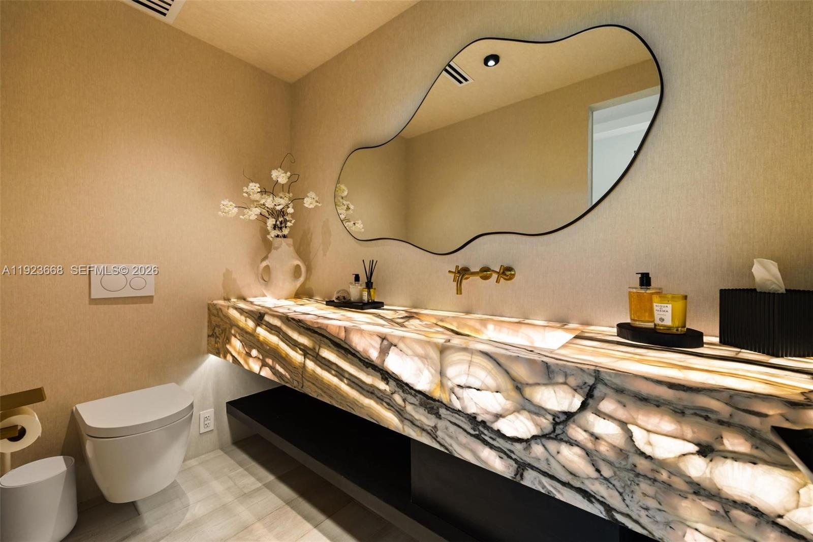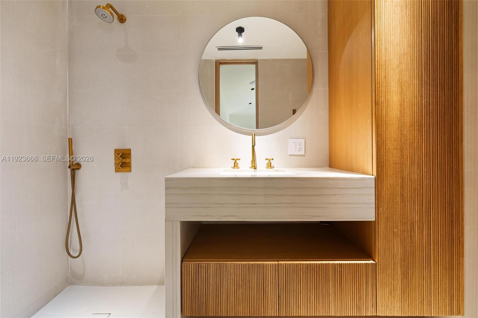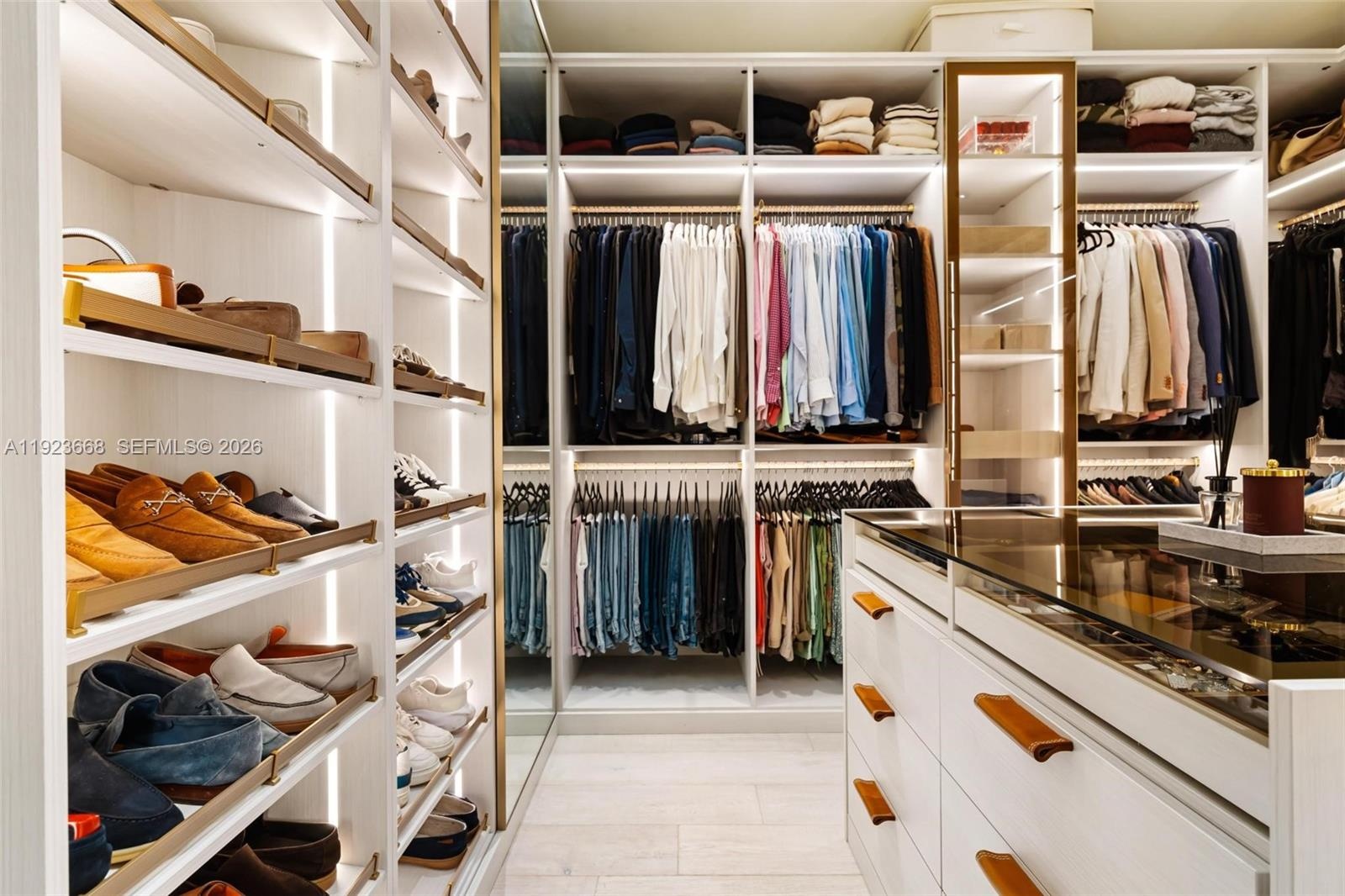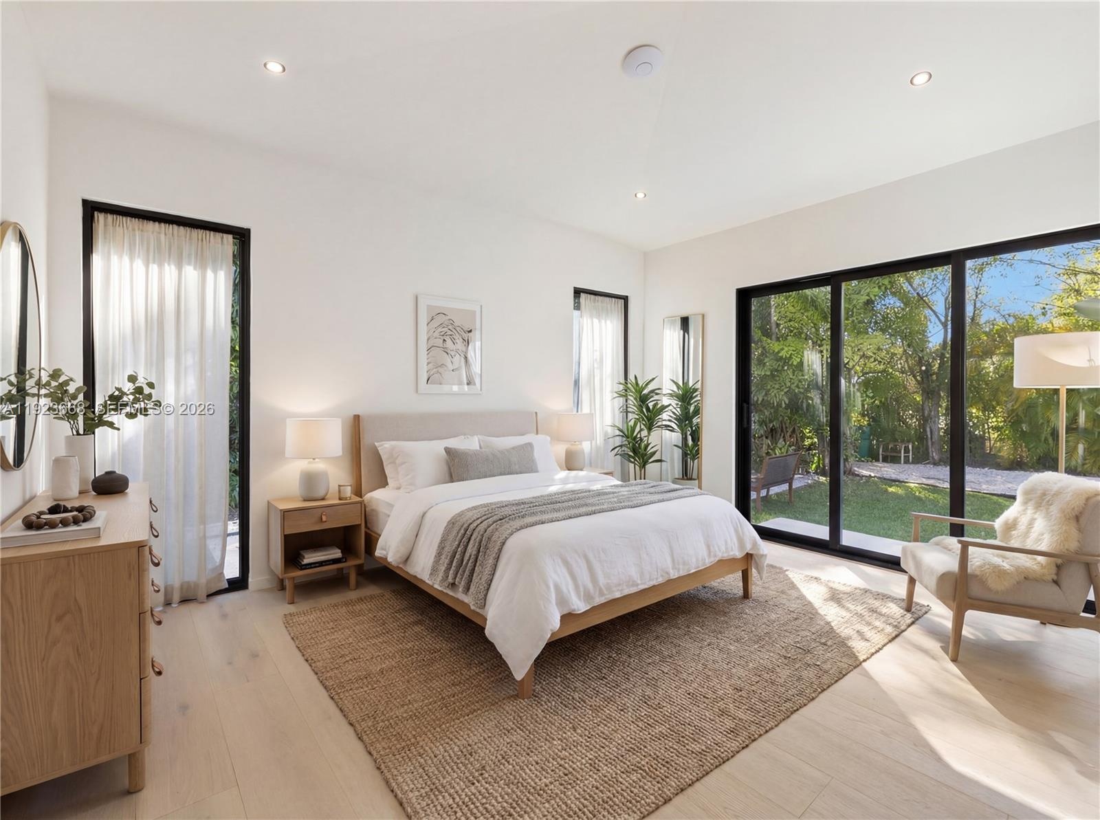 The 750 SF primary suite offers a true retreat with spa-style bath, steam shower, soaking tub, and designer stone finishes, complemented by a 225 SF custom walk-in closet with bespoke cabinetry, LED lighting, integrated sound, center island, and skylight illumination. Ideal for boating enthusiasts, the property provides direct bay access, shore power at the seawall, and an expansive yard perfect for entertaining. The grounds feature a full bocce court, lush privacy landscaping, and ample space for a future pool or expansion. Centrally located with top private schools including The Cushman School and Miami Country Day School. A rare opportunity to acquire a turnkey estate offering privacy, scale, and immediate Biscayne Bay access.