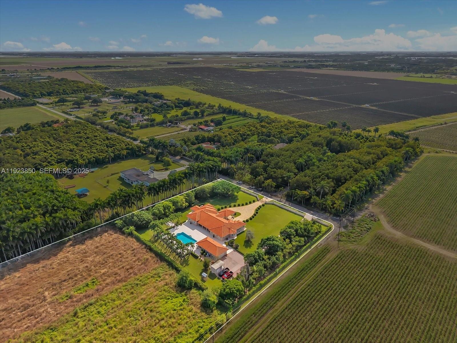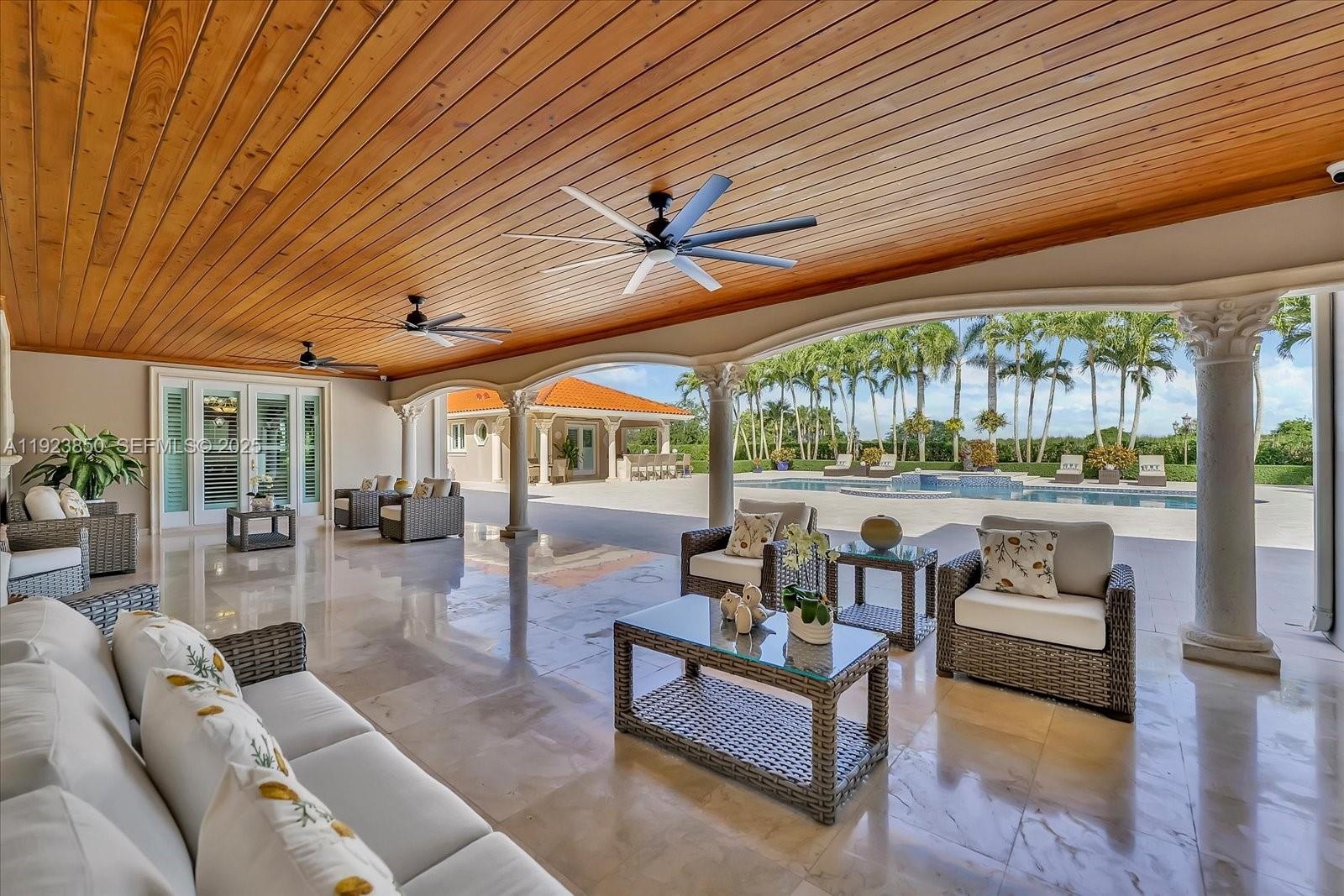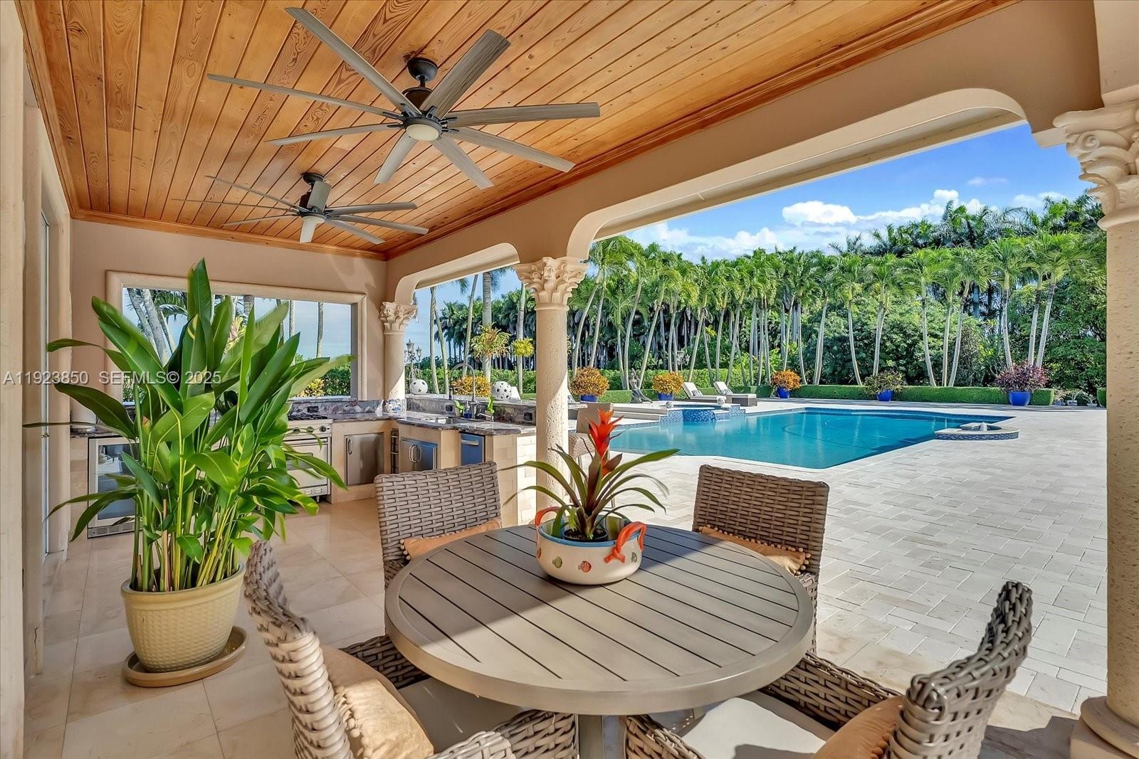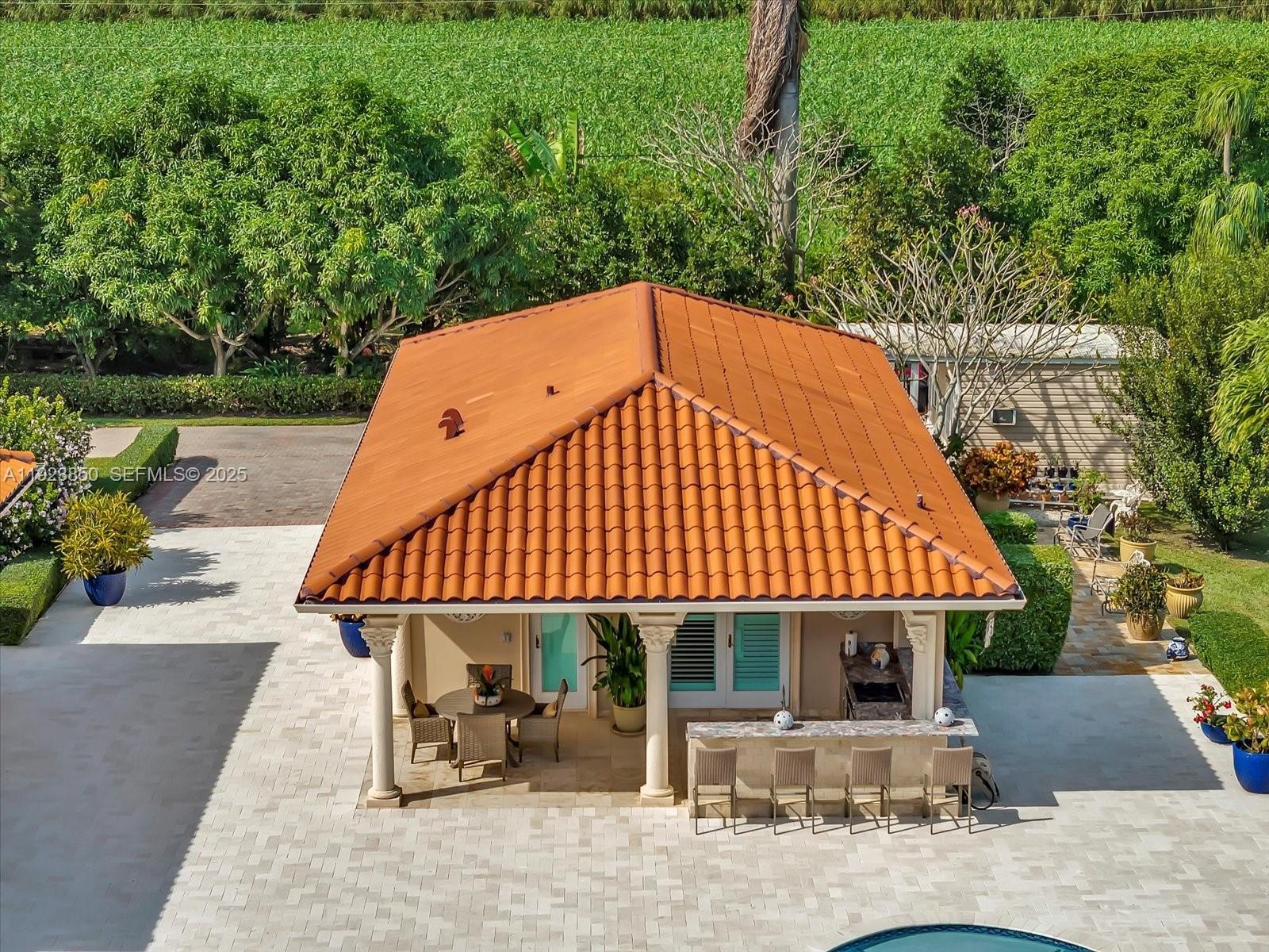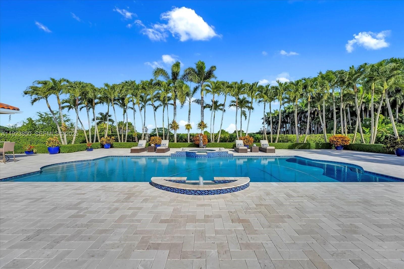 Welcome to this exquisite gated Mediterranean estate in highly sought after West Kendall, offering 5,405 sq ft of refined living space, including 5 bedroom suites—each with its own private bathroom. This elegant single-story residence impresses from the moment you arrive with its grand paver driveway, manicured landscaping, and stately architecture. The property features a detached two-car garage and an inviting cabana complete with a full outdoor kitchen, creating the perfect setting for entertainment and resort-style living. Inside, spacious living areas, high ceilings, and abundant natural light enhance the home’s timeless appeal. Nestled in a private, lush setting and centrally located near top-rated schools and major conveniences, this is a rare opportunity to own a true Miami luxury estate.
