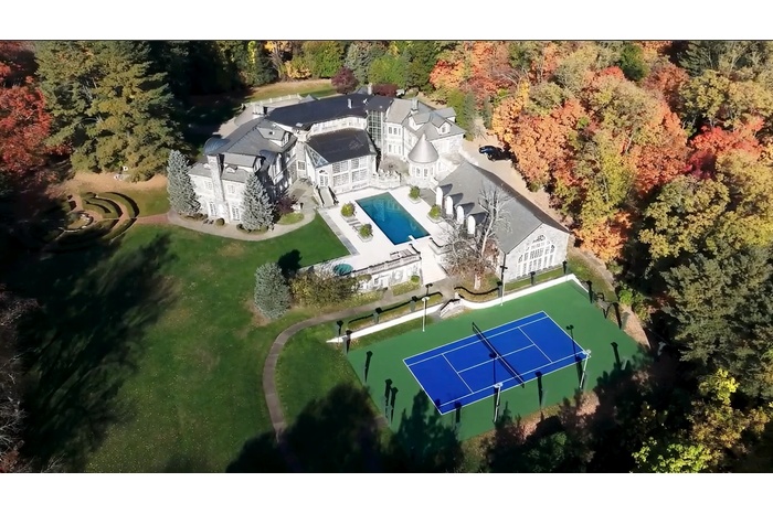 Set across more than 6.3 acres of landscaped, private grounds, this 32,500-square-foot estate carries the scale and architectural presence of a European residence, executed for modern living.