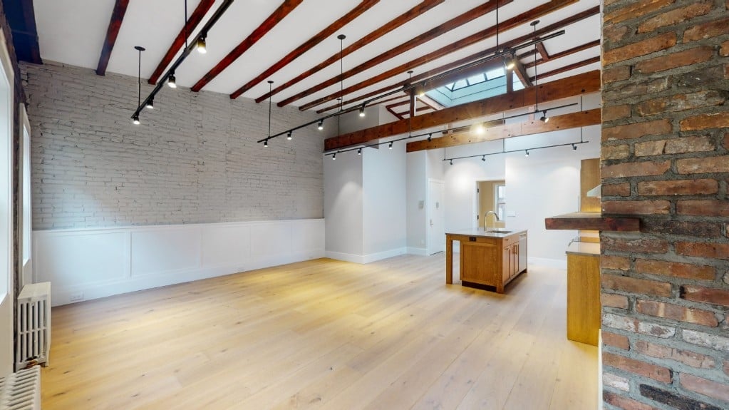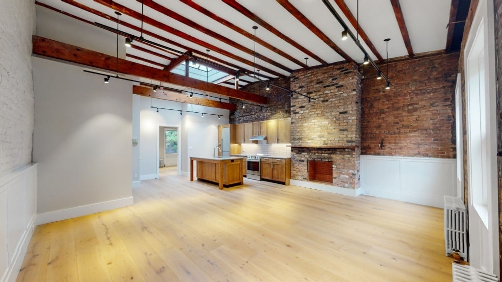 Live in this recently renovated, Victorian style one bedroom loft in prime centrally located Chelsea on 17th St right off 8th Avenue. Features include artistic exposed beams, large skylight, central A/C, shaker style special walnut cabinets and doors, warm wide plank hardwood floors as well as large new bathroom with washer dryer. Enjoy this civil war era town home converted to modern apartment living maintaining historic elements.