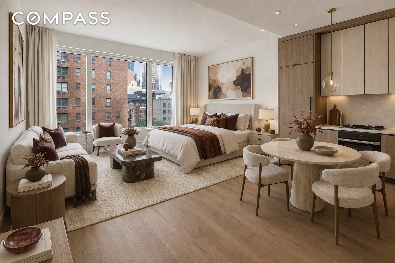 Residence 5C at The Treadwell is a spacious studio offering an inviting, east facing view that fills the space with morning light.