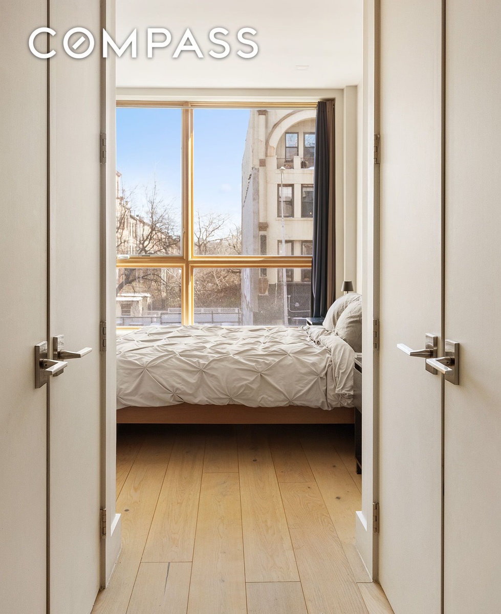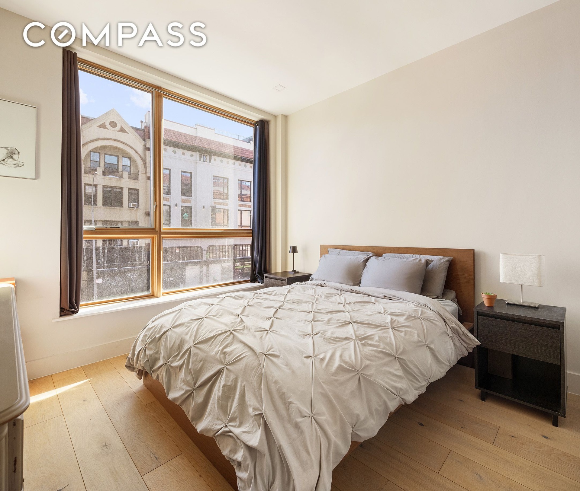 Located in an elevator building at 1230 Bedford Avenue, the property offers the convenience of a virtual doorman system and proximity to a variety of neighborhood amenities, including dining, retail, and everyday services. Multiple transportation options are nearby, with access to local bus lines, the LIRR, and the A/C subway lines approximately one block away.