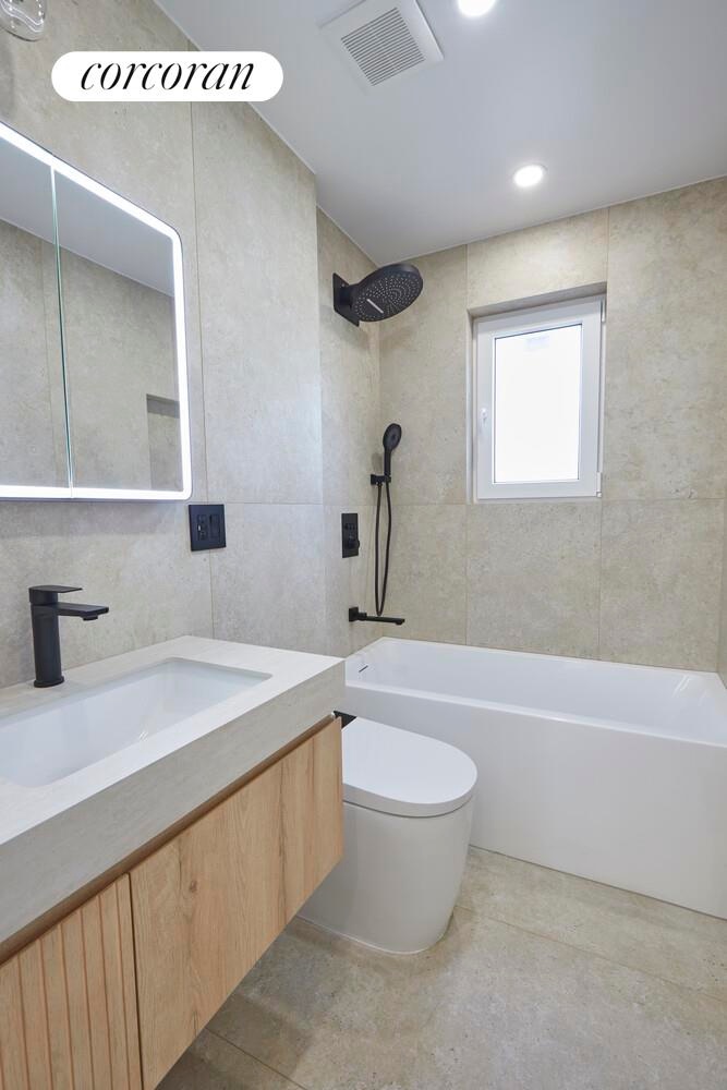 Upstairs, you'll find three bedrooms and two full bathrooms, including a serene windowed primary ensuite that feels like a spa retreat. The primary bath features a double vanity, with a double medicine cabinet, generous storage, and an oversized shower outfitted with the latest smart Grohe fixtures. The primary bedroom itself offers something every buyer dreams of: a full wall of custom built-in closets, finally giving you the storage space you actually need. The two additional bedrooms are ideal as children's rooms, guest rooms, or a home office, each with plentiful closet space of their own.