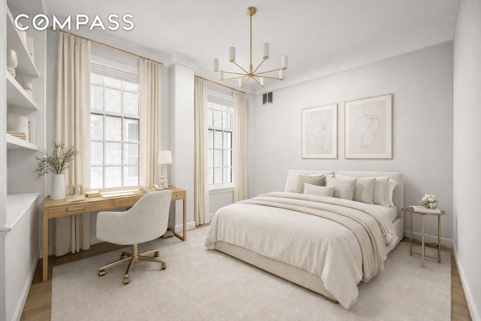 Set within a distinguished pre-war cooperative built in 1926, the residence is entered from the building’s traditional lobby. The space enjoys high ceilings and oversized windows overlooking a quiet, tree-lined Upper East Side block known for its architectural charm and timeless character.