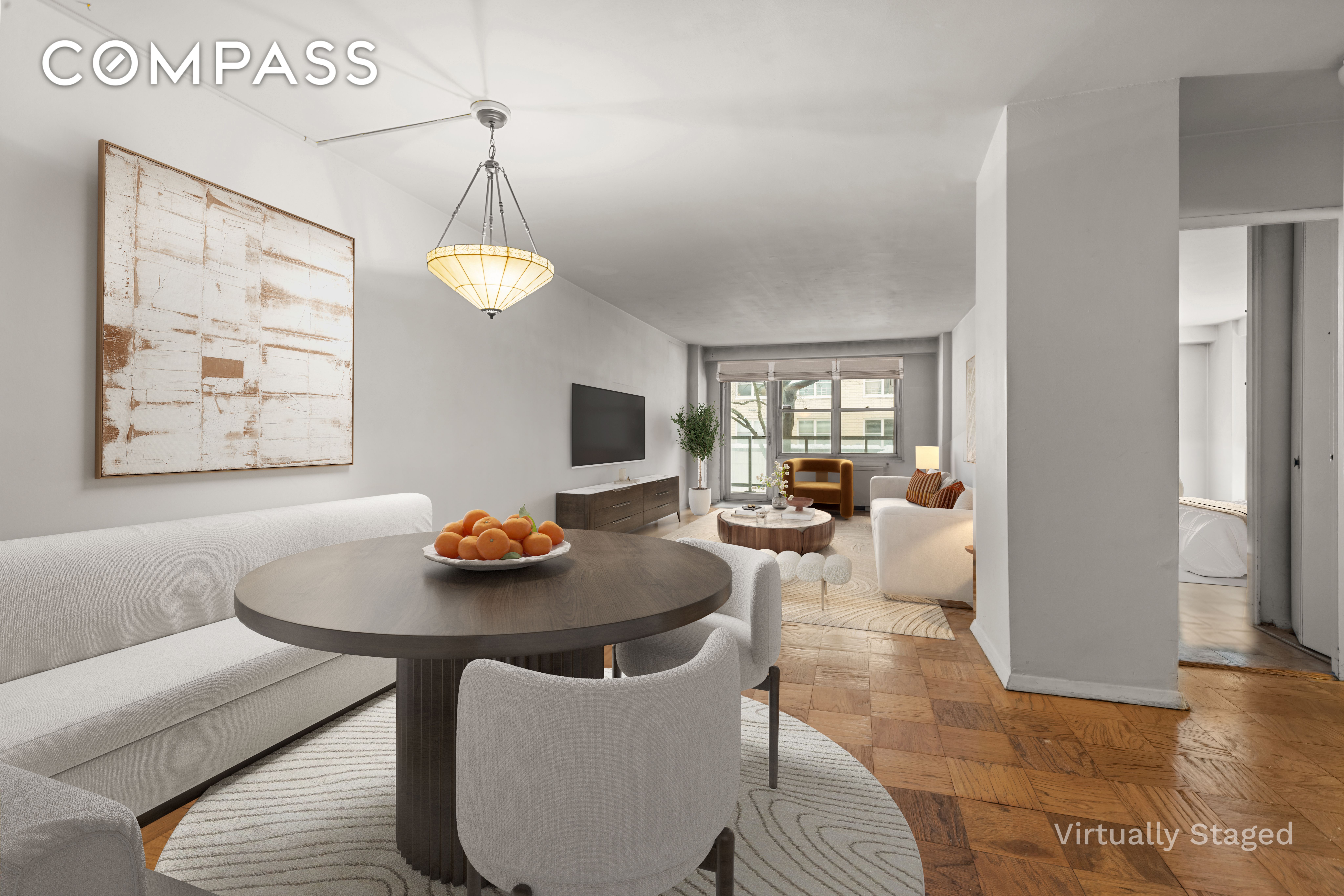 You’re welcomed by a gracious, closet-lined foyer that opens to a separate dining area and an impressive 30-foot, south-facing living room filled with beautiful natural light. Just beyond, your own 24-foot private balcony extends the living space outdoors, the perfect setting for morning coffee or unwinding at the end of the day.