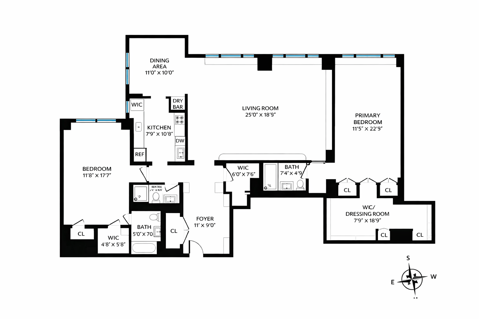 Sun Flooded, loft-like residence on the 25th floor offering wide open city views from every room from the 25th floor, representing one of the most desirable EF combinations at 444 East 86th Street on the Upper East Side. Designed by Kevin O’Sullivan, the home combines architectural elegance with exceptional light and scale.